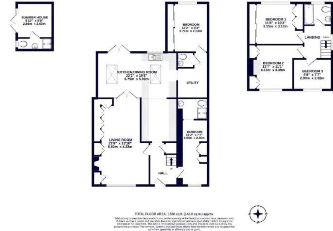 The property benefits from a substantial front driveway, providing plentiful private parking and enhancing its overall exterior charm. The rear garden offers a private and enjoyable outdoor retreat, featuring a broad patio and decking area ideal for outdoor dining and social gatherings, with the remainder mainly laid to lawn for straightforward upkeep. A notable addition is the detached summer house, complete with its own shower facilities creating an adaptable space that could function as a home office, fitness room, creative studio, or even a self-contained annex for guests or extended family.