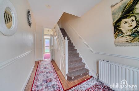 The ground floor features a welcoming hallway, leading to a spacious through lounge, creating a bright and welcoming living space that works well for both relaxing and entertaining. This is complemented by a separate kitchen, offering ample storage and preparation space, with access directly out to the rear garden.