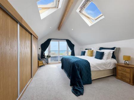 A standout feature of this home is the self-contained annexe, offering excellent potential for extended family, dependent relatives, or holiday letting. It includes an open plan living area and bedroom on the ground floor, with a spacious upper bedroom opening onto a rooftop balcony with stunning sea views.