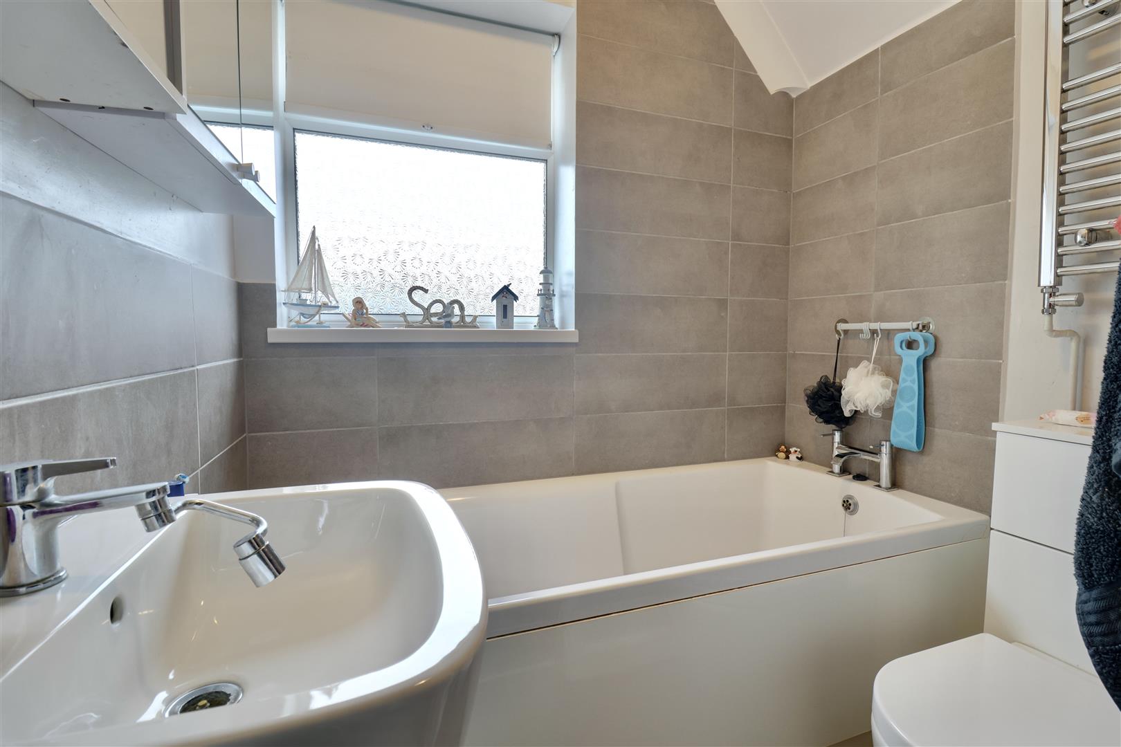 The first floor comprises three well-proportioned bedrooms, including two doubles and a single, ensuring ample space for family or visitors. The wide garden is laid to lawn, complemented by a patio area, perfect for outdoor relaxation and entertaining.