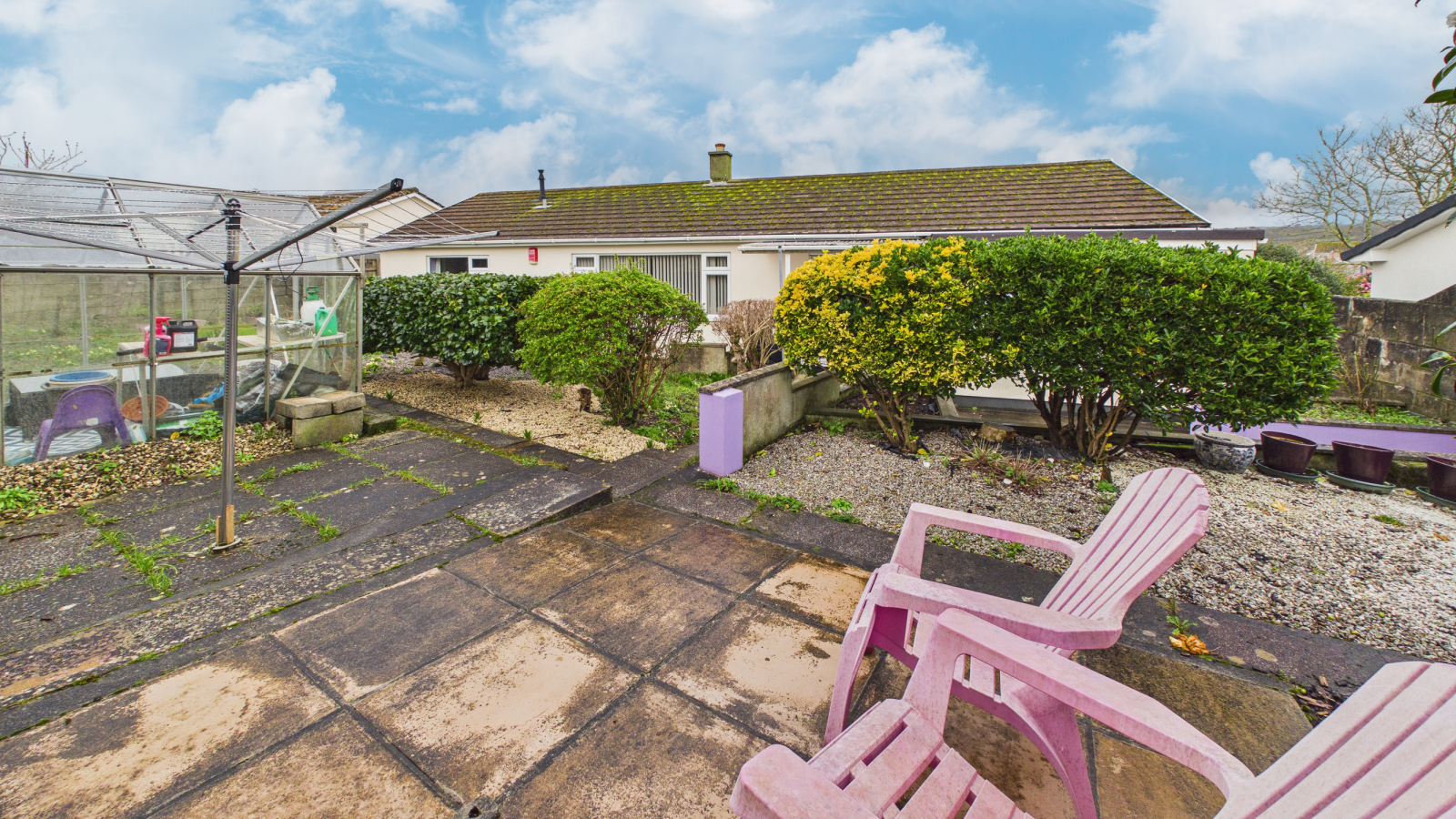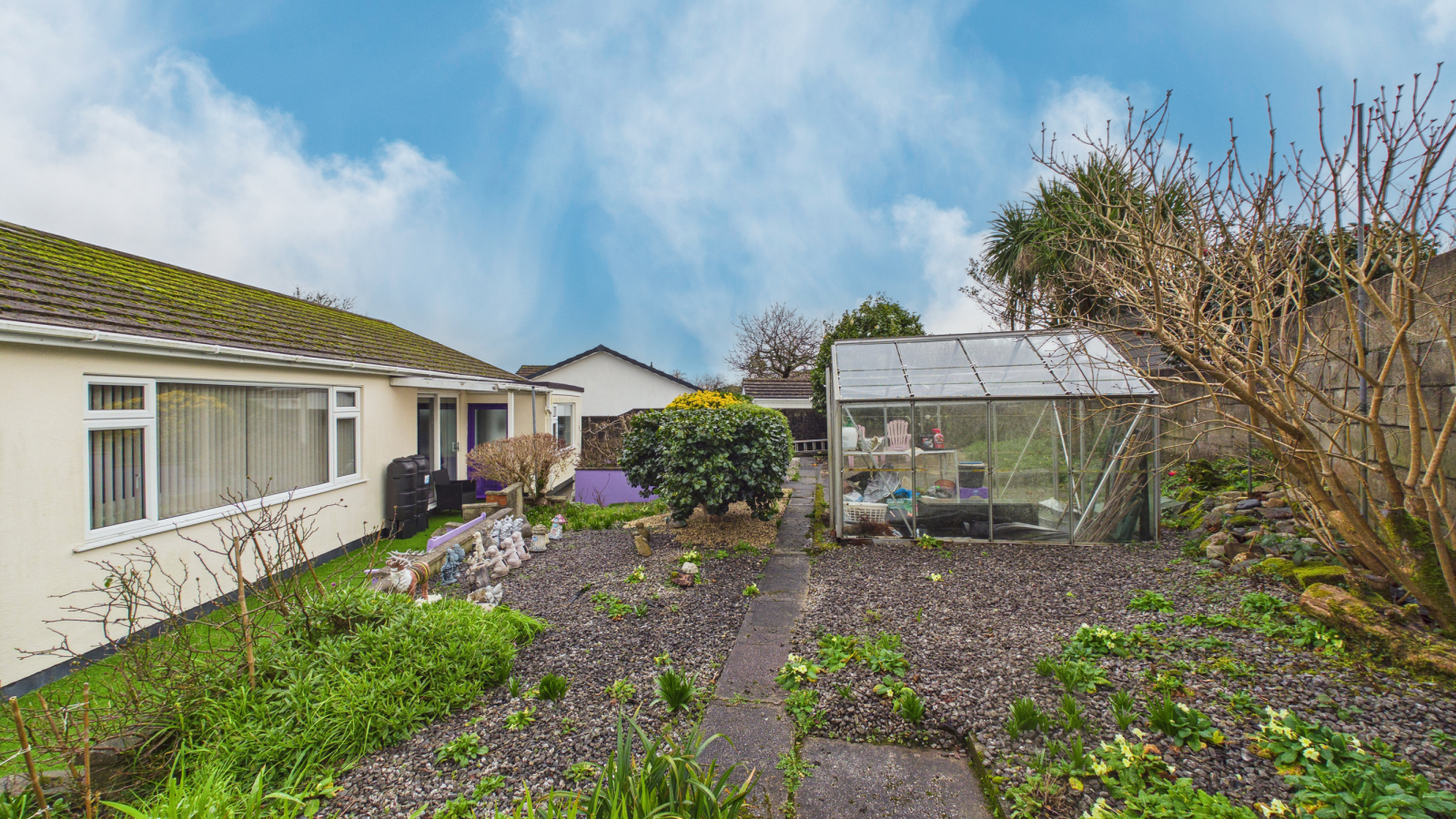 The property is approached over driveway with parking for several vehicles leading to the garage. There is a garden to the front with established shrub and plant borders, pathway to the side of the house leads to the rear garden and further side garden laid to granite chipping. The rear garden is terraced with areas of patio, raised flower beds, aluminium greenhouse with further established shrub and plant borders and former vegetable plot. The rear garden is fully enclosed by high level fence, giving a high degree of privacy.