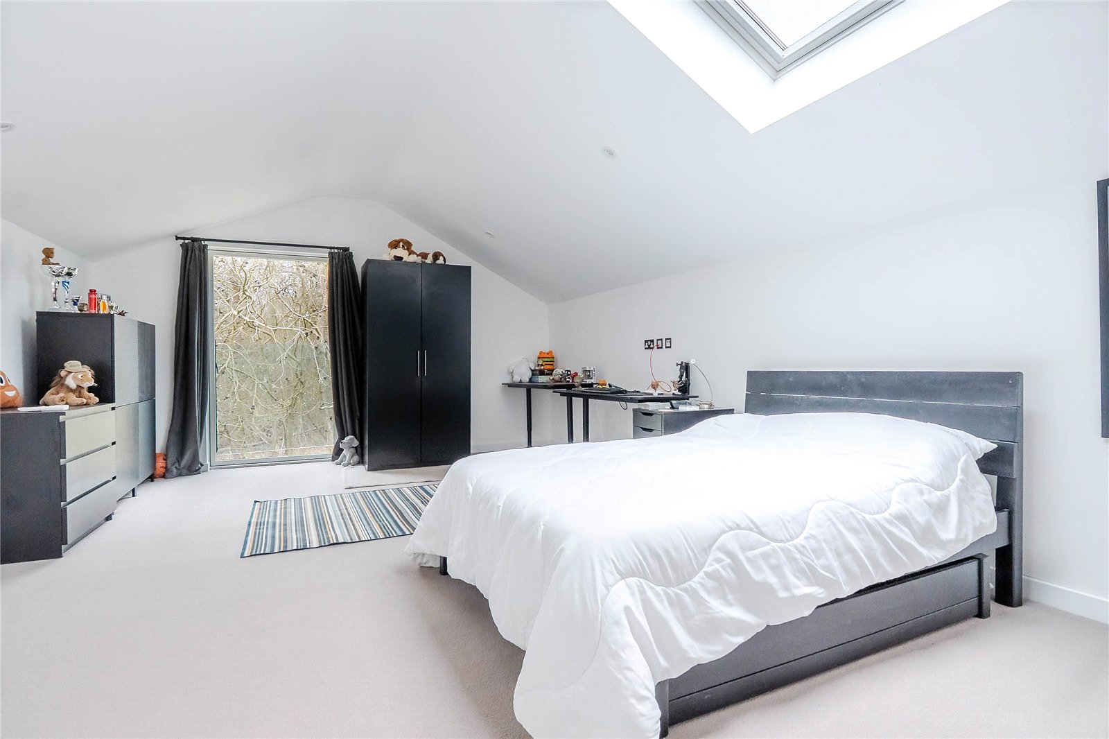The top floor provides a versatile space, ideal as a fifth bedroom, gym, playroom, or additional study area. Featuring large glazed windows, a Velux roof light, and a refitted en suite shower room, this floor is bathed in natural light, making it a truly adaptable space.
