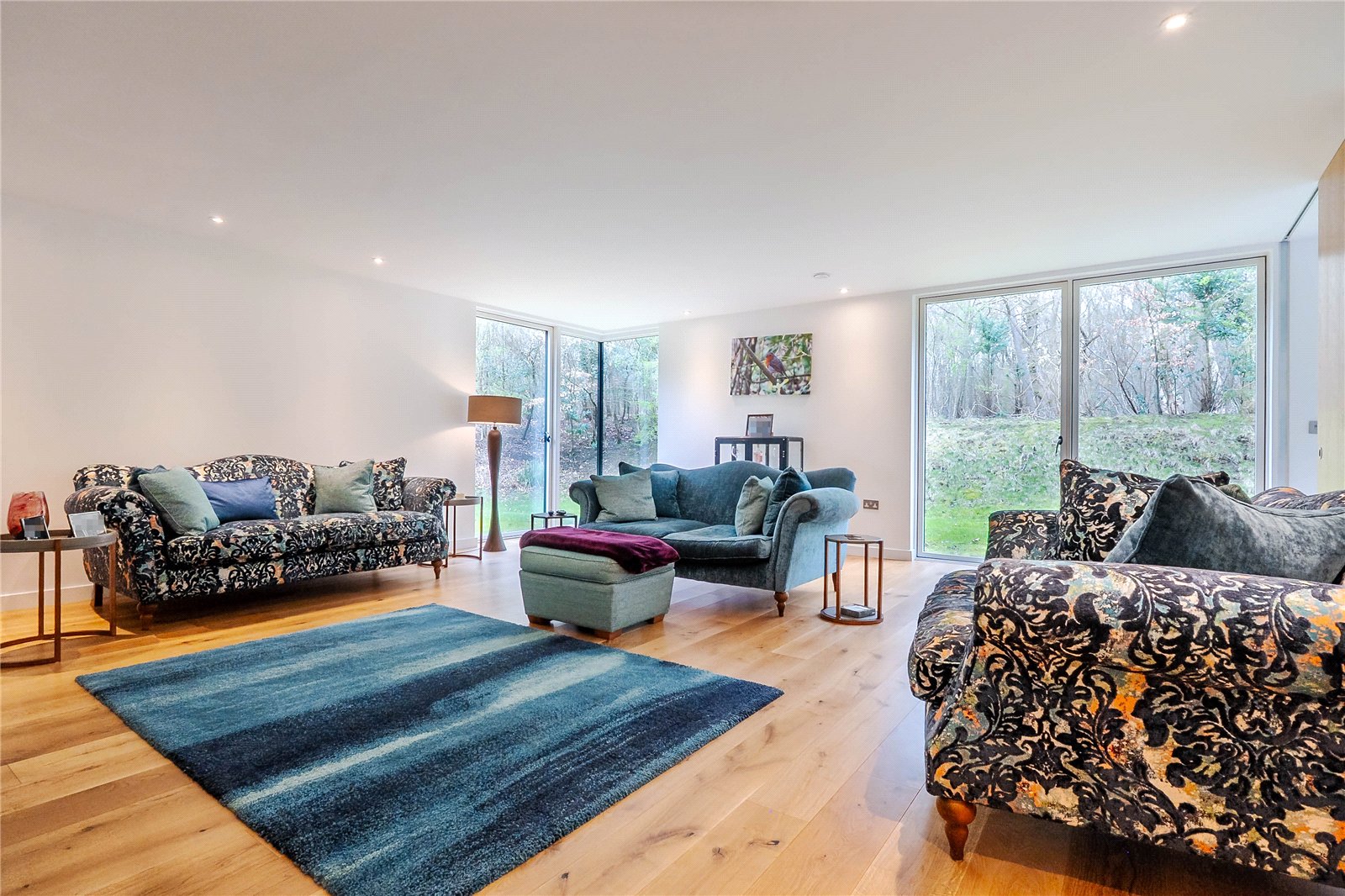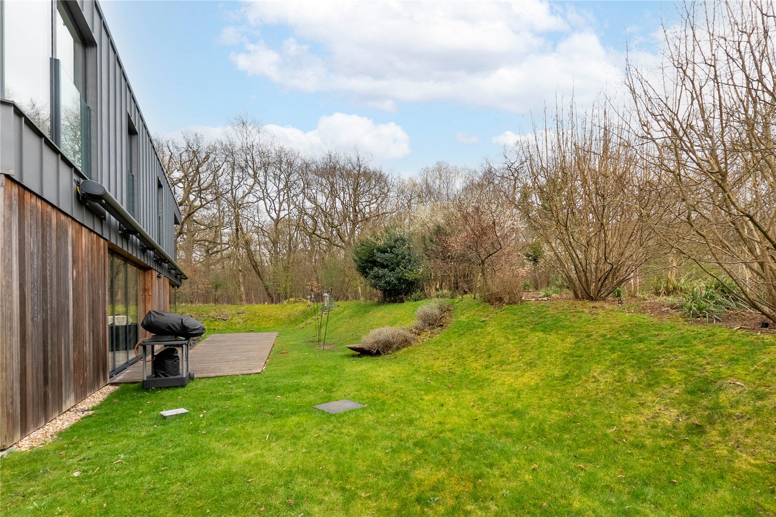 Nestled within a private gated development, The Cedar House is one of four exceptional contemporary residences set amidst ancient woodland, forming part of an expansive 600-acre nature reserve. This stunning property offers the ultimate in luxurious, sustainable rural living, with privacy, security, and modern eco-friendly features.