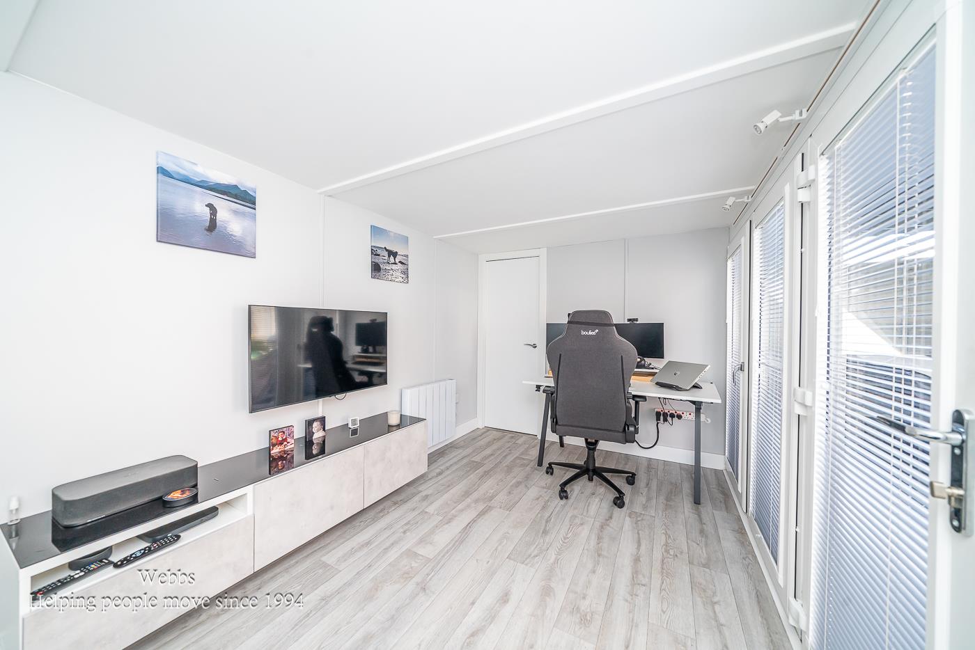 The outdoor space is equally impressive, featuring a summerhouse that is currently used as an office. This versatile area could easily be transformed to suit your personal needs, whether as a dance studio, bar, gym, or even an aesthetics clinic. Additionally, the home is equipped with two electric vehicle charging points, making it an excellent choice for eco-conscious buyers.