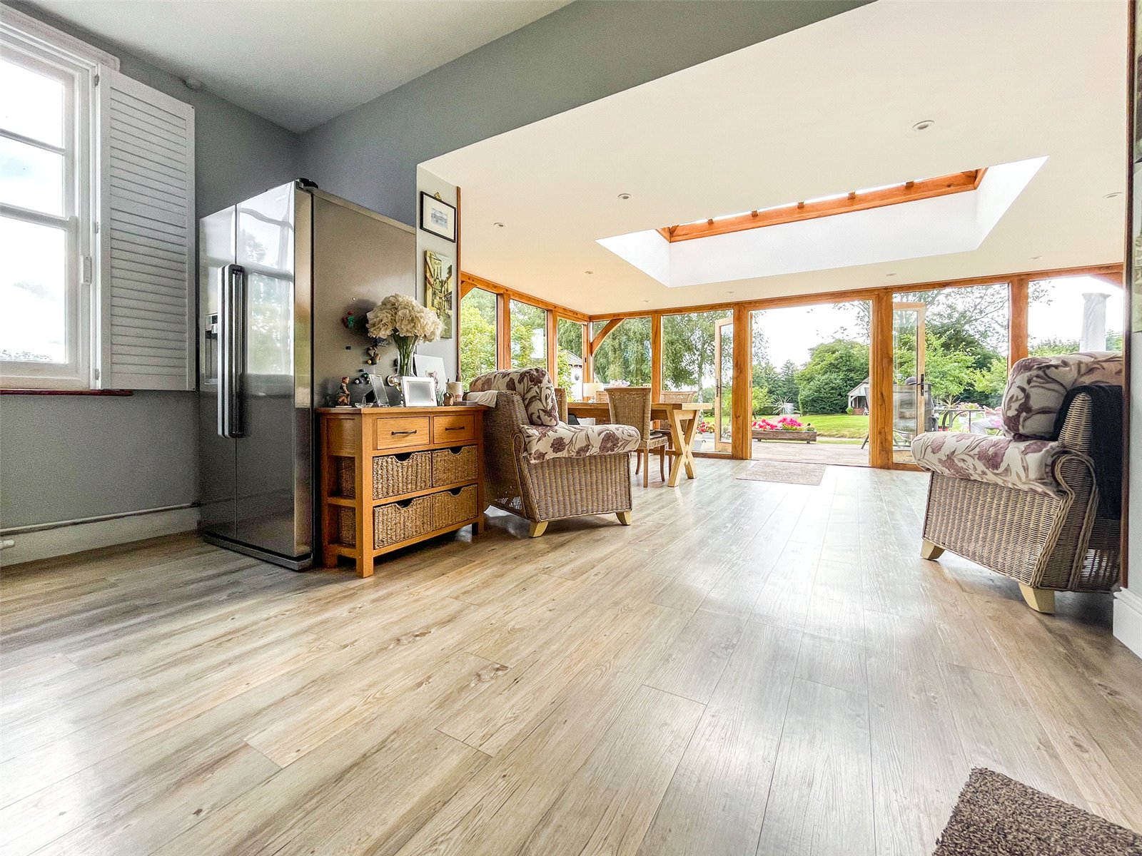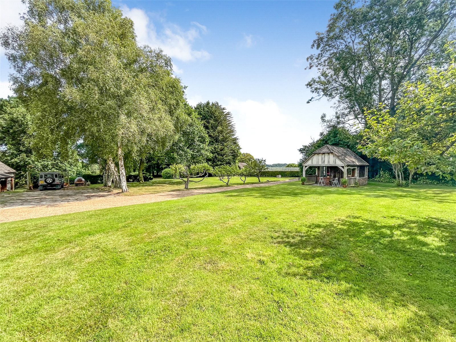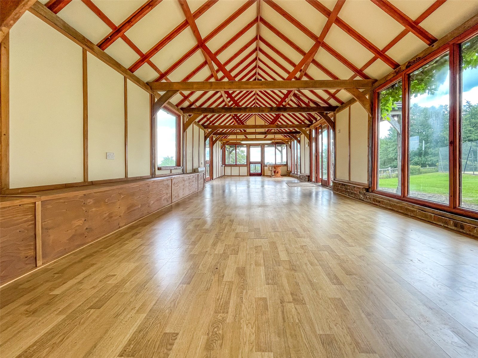 OUTSIDE: This idyllically located country home/ farm smallholding has in total just over 16 acres of grass paddocks and beautiful landscaped gardens. There is also a small lake at the bottom of the fields surrounded by trees, an all-weather artificial grass tennis court, as well as an historical grass court, a charming detached character summer house, a large detached triple heritage style garage complex with workshop and storage areas., There is also a further large detached old pavilion, which has already had a previous pre application planning meeting, which has resulted in a positive response for the above mentioned pavilion building to be converted into a two bedroom detached annex / holiday letting unit. Furthermore, there are still old remaining building bases and foundations of old piggery buildings, as well as old poultry buildings from when this farm was once one of the most successful free range / battery chicken egg businesses in the U.K. In our opinion, there could also be excellent scope to build a good-sized stable complex, in addition to also incorporating other equestrian facilities as a result of all the historic buildings previously located on this very appealing country estate / small holding. There was also an outdoor swimming pool located behind the pavilion building which the previous owners decided to fill in, but as there was existing past planning permission for the pool, it should be fairly easy to reinstate a new one. The grass paddocks do have separate gated access points onto the quiet little used country lane that runs down one of the main field’s boundary.