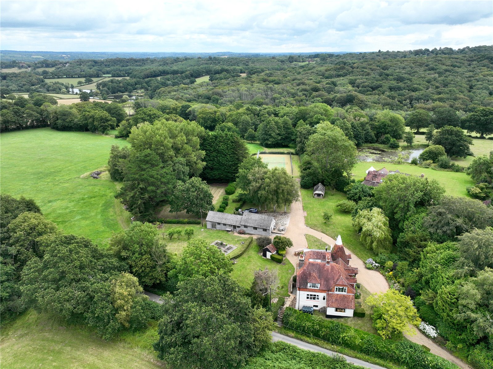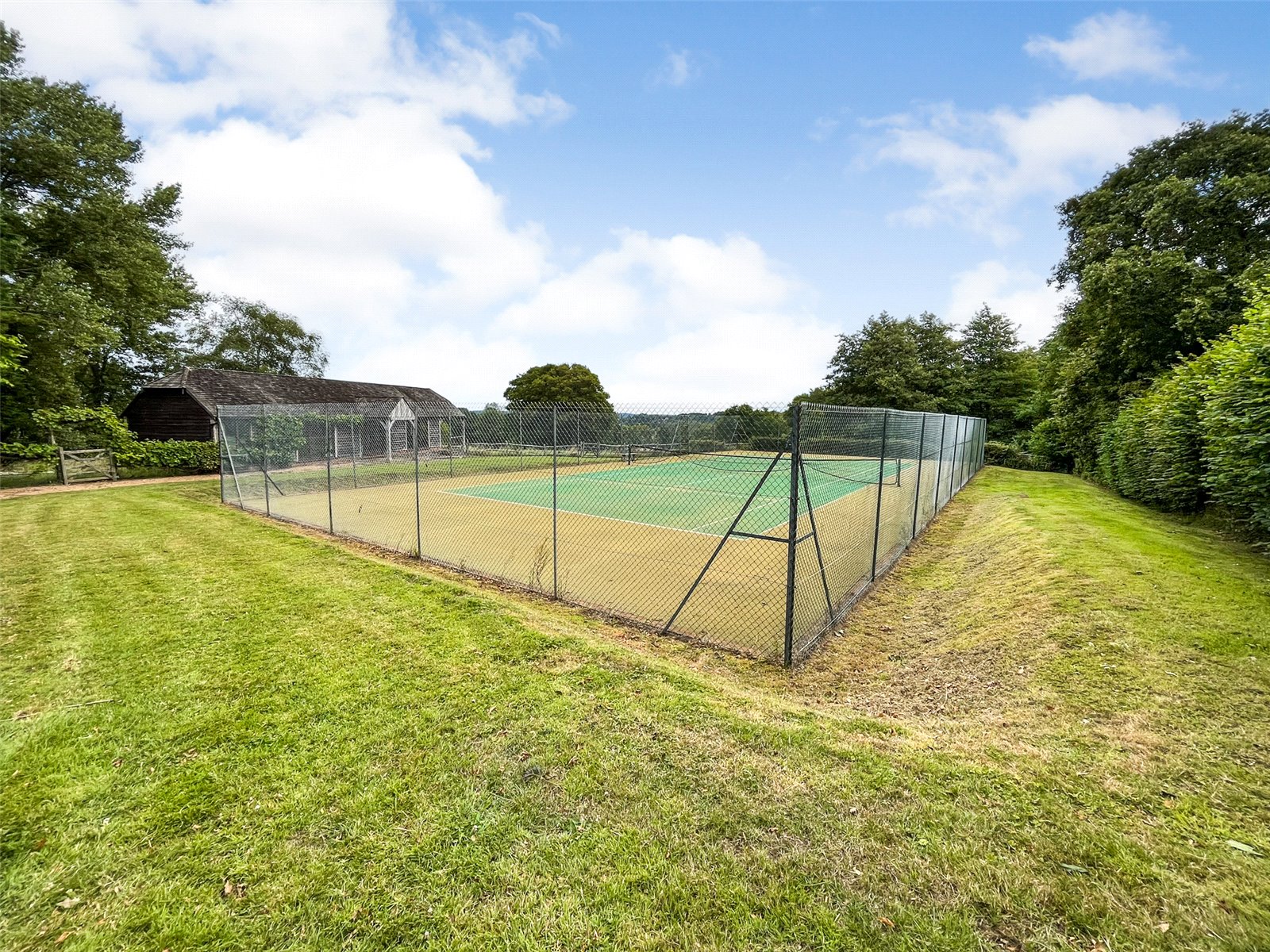 DESCRIPTION: A rare chance to purchase a perfectly and idyllically located beautiful detached substantial character Oast House (which is not grade listed) that has the most amazing elevated rural views from all sides, and which also has the benefit of just over 16 acres of grounds, including both an all-weather artificial grass tennis court and a natural grass court, a large detached pavilion building, which has already had a positive pre-planning application for conversion into a two bedroom detached annex / holiday letting unit. In addition, there is a further large detached heritage building and garage complex with workshop areas incorporated, that may also lend itself for future conversion if so required. Blessed with outstanding views from all sides and being predominantly over its own beautiful grounds, this property which is set in a very peaceful location away from any busy roads, also has a wonderful hidden lake situated at the end of its grass grazing paddocks, being currently surrounded by both young and mature trees. However, this beautiful secret lake, could be greatly enhanced if required, subject to planning. The little used country lane nearby, provides easy access to both Stonegate and Etchingham mainline train stations, which are both within a short drive away, making this property perfect for London commuters. When taking into account all of the property’s grass paddocks, this attractive country home is also considered ideal to have professional equestrian adaptations, with ample space for stables and an all-weather menage to be built, with even the possibilities for the construction of a covered arena, subject to planning, especially considering the numerous old historic farm buildings that have been on the farm and their still existing remaining foundations.