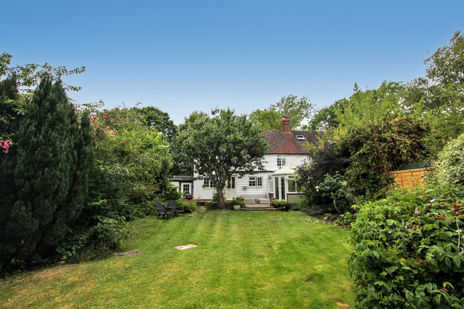 An attractive three double bedroom semi-detached weather boarded cottage situated on a country lane and dating we believe to 1863, the property having been the subject of many improvements by the current owner including remodelled family bathroom and ensuite, spacious kitchen/diner and conservatory, utility/cloakroom and two reception rooms one with a feature fireplace and wood burning stove. There is a good size mature garden to the rear and a garage with its own driveway.