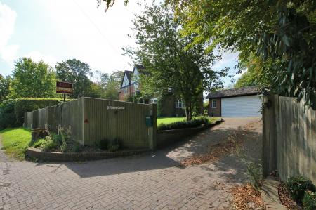 The front of the property is approached via a long drive through the front gardens onto the parking area with space for several vehicles leading to the detached double garage.