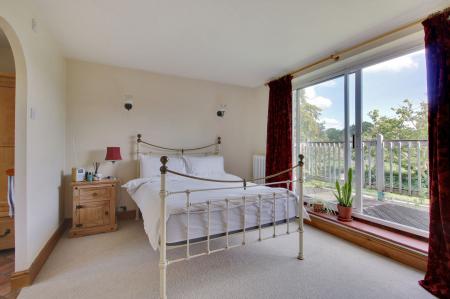 From the living room a staircase rises to the first floor offering; a large principal bedroom with an en-suite shower room and a balcony enjoying far reaching views across the neighbouring countryside, two further good size bedrooms both with built-in wardrobes and a beautifully fitted family bathroom.