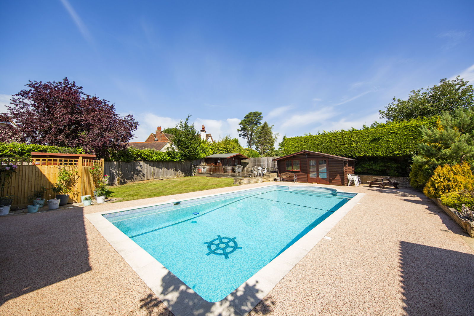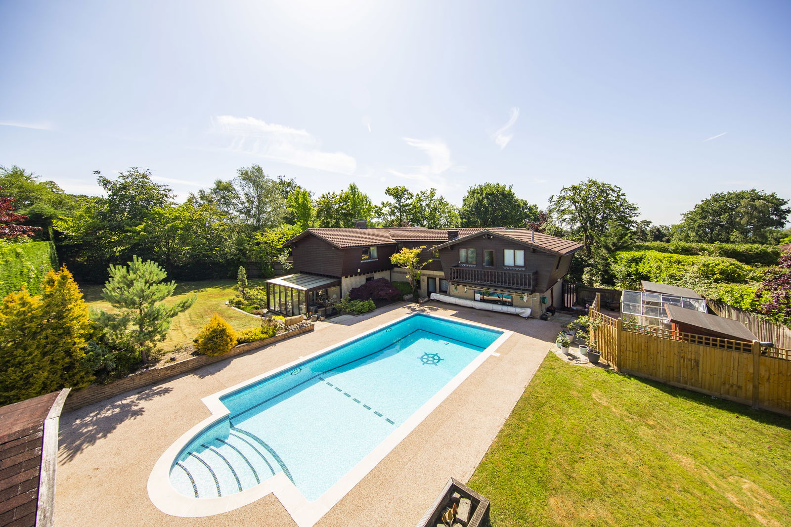 A spacious and individual 5 bedroom detached property situated in one of Heathfield's most sought after private roads in a bold plot of 0.33 acres with flexible accommodation and attractive enclosed rear gardens with a heated swimming pool. The spacious rooms include a large sitting room with access to a conservatory, kitchen opening into a dining room and useful utility room providing integral access to the garage. Two large bedrooms enjoy en-suite shower rooms with a family bathroom and 3 further bedrooms on the first floor. All located within a stones throw of Heathfield Hight street, yet in this tucked away position. NO ONWARD CHAIN.