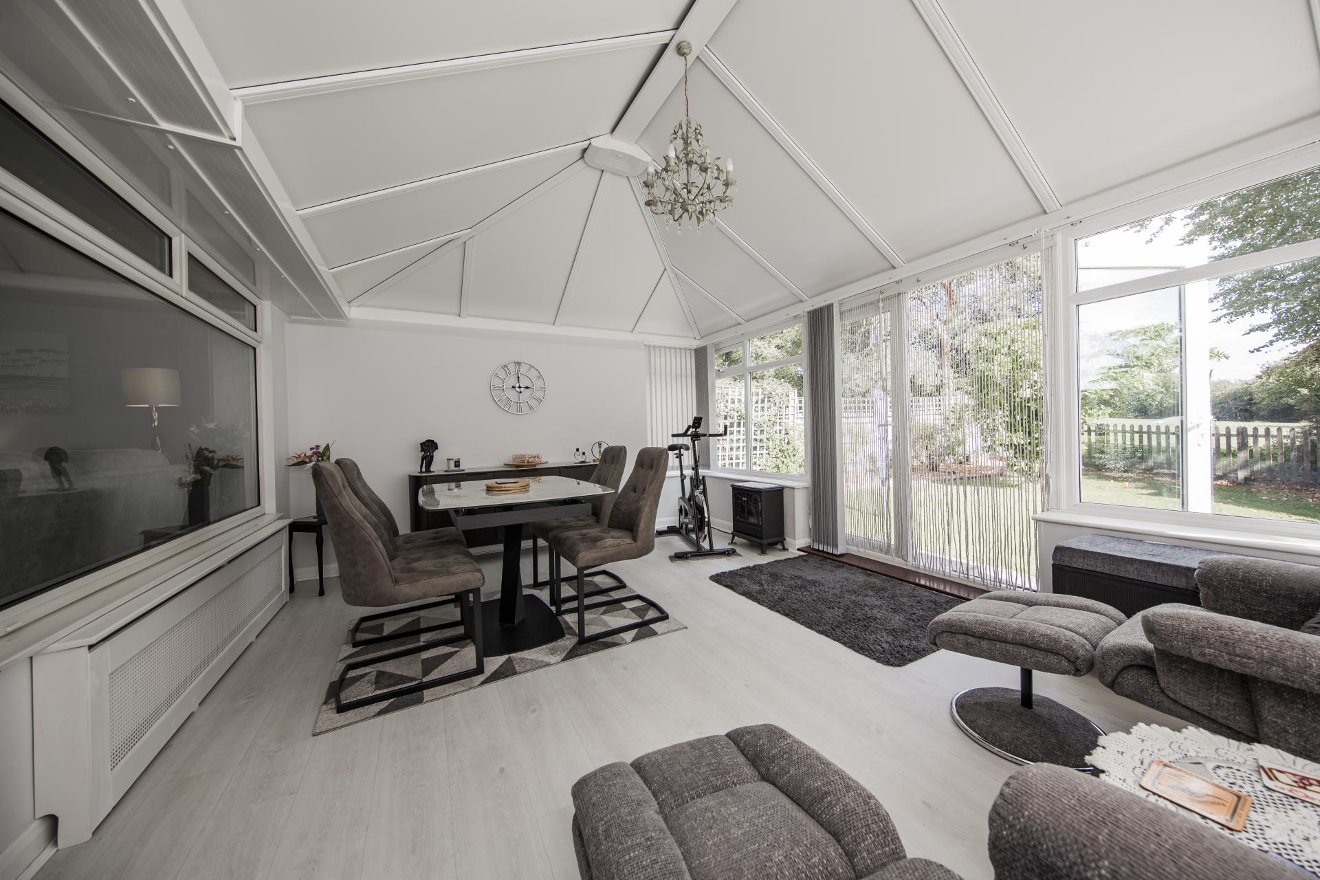 CONSERVATORY: A large bright and spacious room with vaulted UPVC Insulated roof incorporating ceiling light with a range of double glazed panels and windows and French doors giving access to the rear garden making this a room for all seasons. Cushioned timber effect flooring. Radiator.