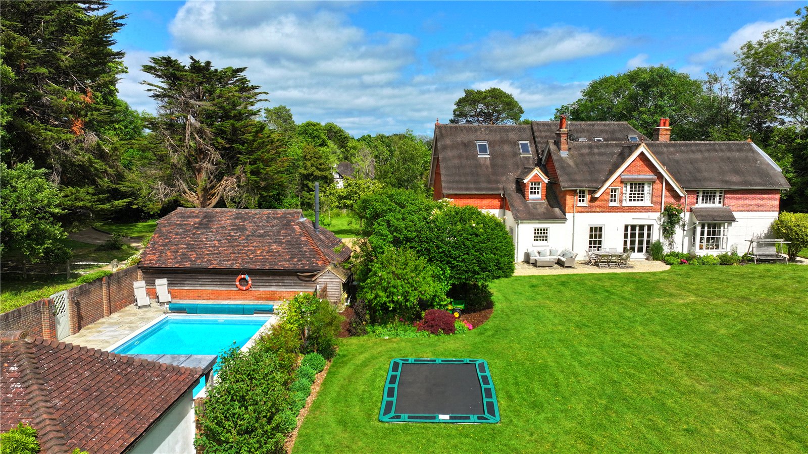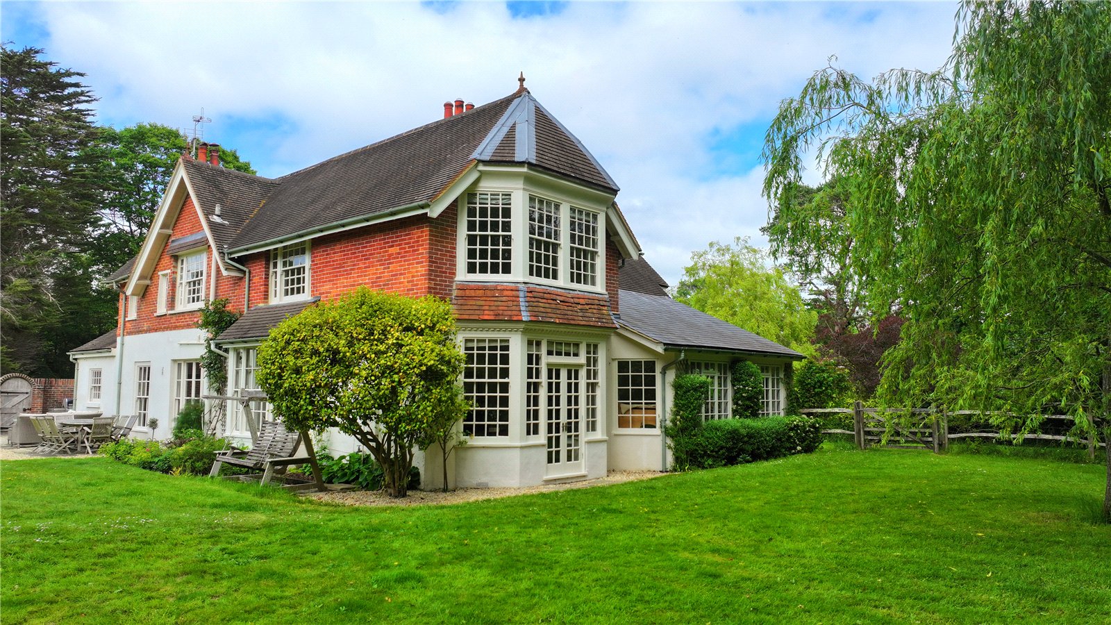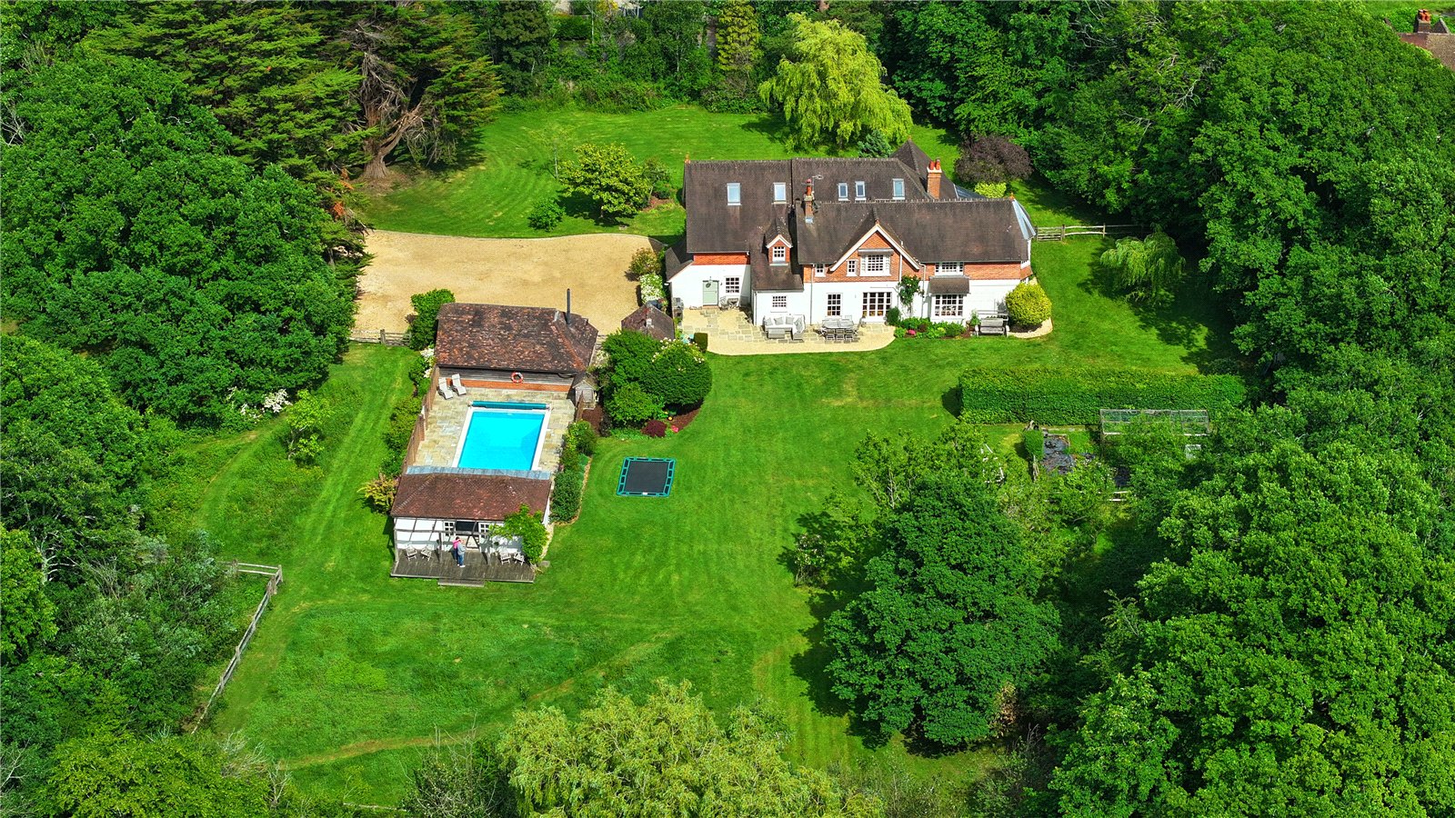 INTRODUCTION: A very attractive, unusually spacious, unlisted Edwardian country house which blends abundant period features with modern comfort. A rare example of the scale and style of its era, the house has a wonderfully peaceful feel within and offers 5,161 square feet of easily flowing, generously proportioned living space that is ideal for family life and entertaining. The house sits centrally within very secluded grounds of circa 1.8 acres, well away from neighbours and the road, with extensive outbuildings including a very attractive pool house with pergola, deck and veranda and heated swimming pool. Surrounded by greenery and backing onto beautiful, ancient woodland beyond, the house and plot feel nestled in nature, yet local amenities are only a short walk or drive away.