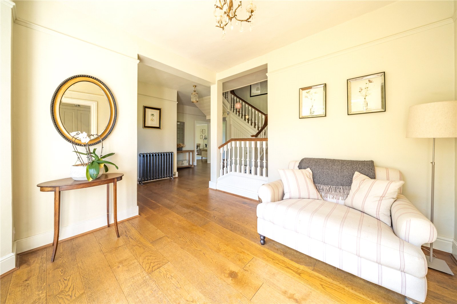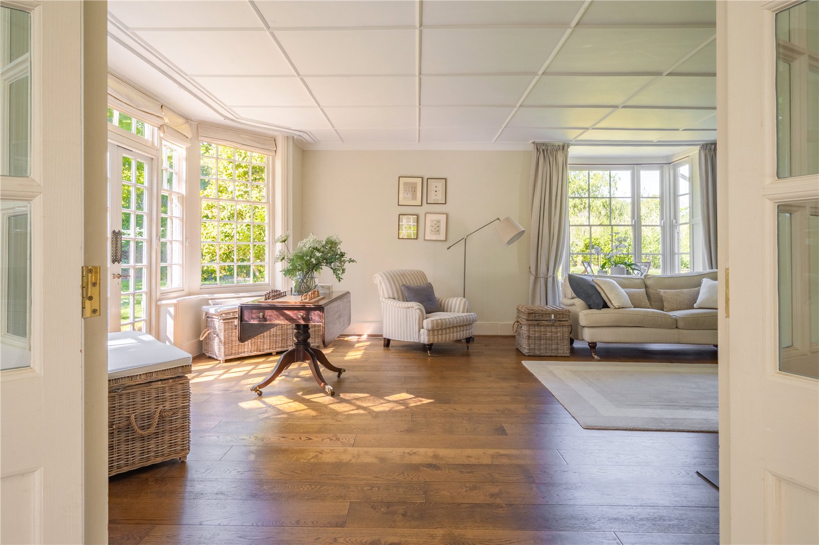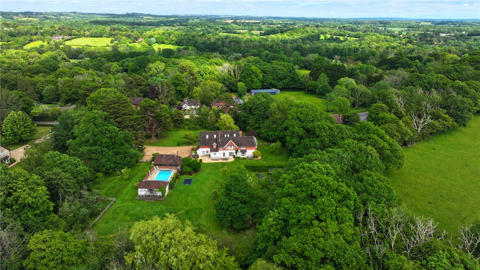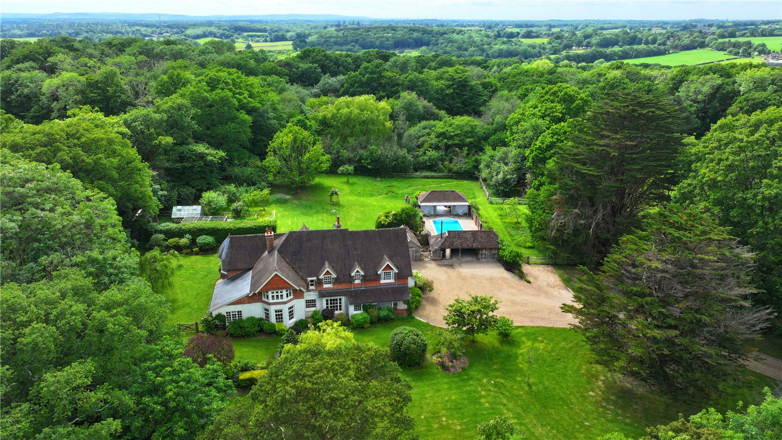 INTRODUCTION: A very attractive, unusually spacious, unlisted Edwardian country house which blends abundant period features with modern comfort. A rare example of the scale and style of its era, the house has a wonderfully peaceful feel within and offers 5,161 square feet of easily flowing, generously proportioned living space that is ideal for family life and entertaining. The house sits centrally within very secluded grounds of circa 1.8 acres, well away from neighbours and the road, with extensive outbuildings including a very attractive pool house with pergola, deck and veranda and heated swimming pool. Surrounded by greenery and backing onto beautiful, ancient woodland beyond, the house and plot feel nestled in nature, yet local amenities are only a short walk or drive away.