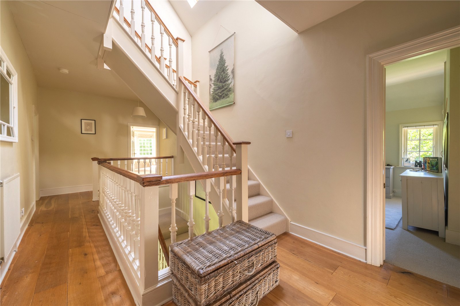 SECOND FLOOR ACCOMMODATION: The wooden staircase winds its way up from the galleried first floor to the second floor landing where matching oak tongue and groove doors lead off into bedroom six and to a large attic storage room.