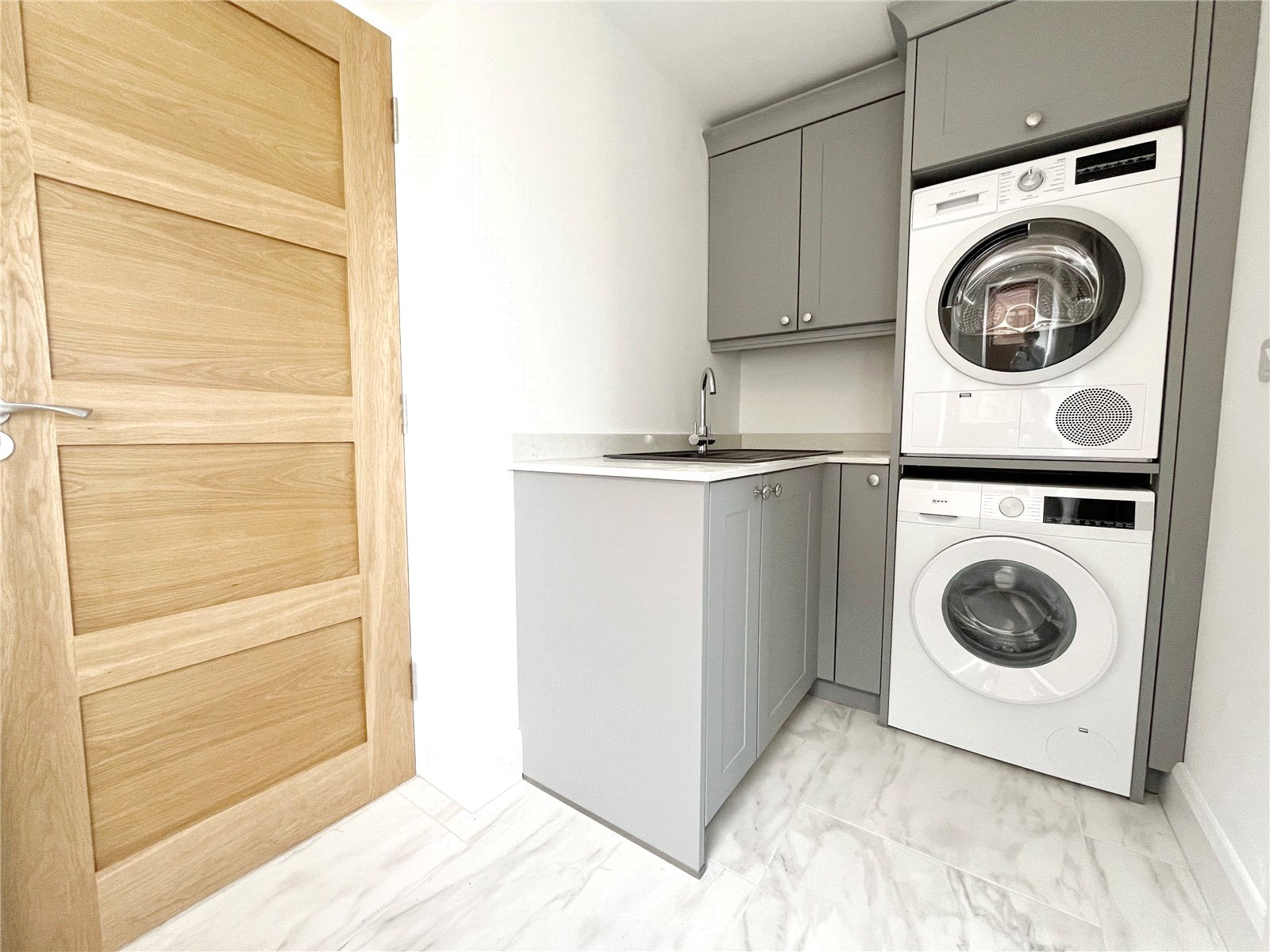 UTILITY ROOM: With further range of quality cupboard and base units and spaces for other appliances. Door to outside and further doors to cloakroom and also to the adjoining integral garage.
