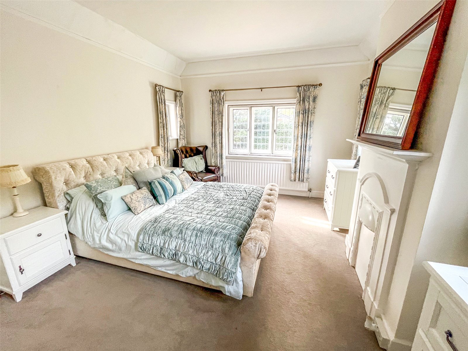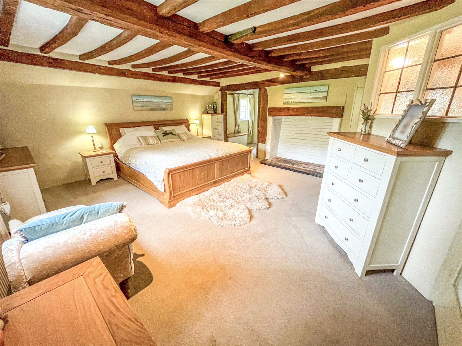 BEDROOM SIX: A double sized room with beamed ceiling, feature fireplace and window with aspect to side garden.