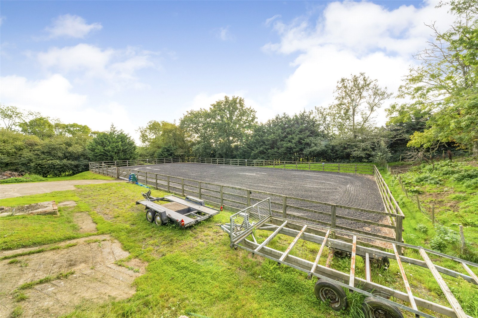 EQUESTRIAN FACILITIES ALREADY ON SITE: These include a large menage and several loose boxes and space to park and store large horseboxes / tailers.