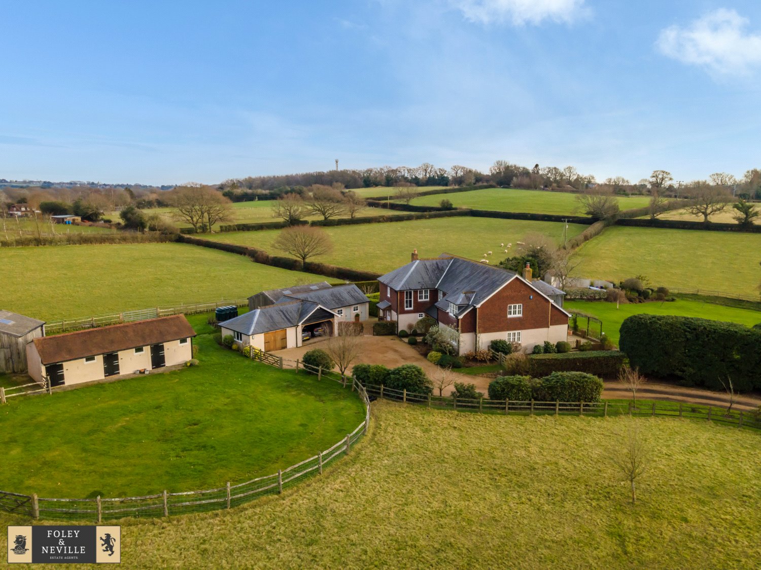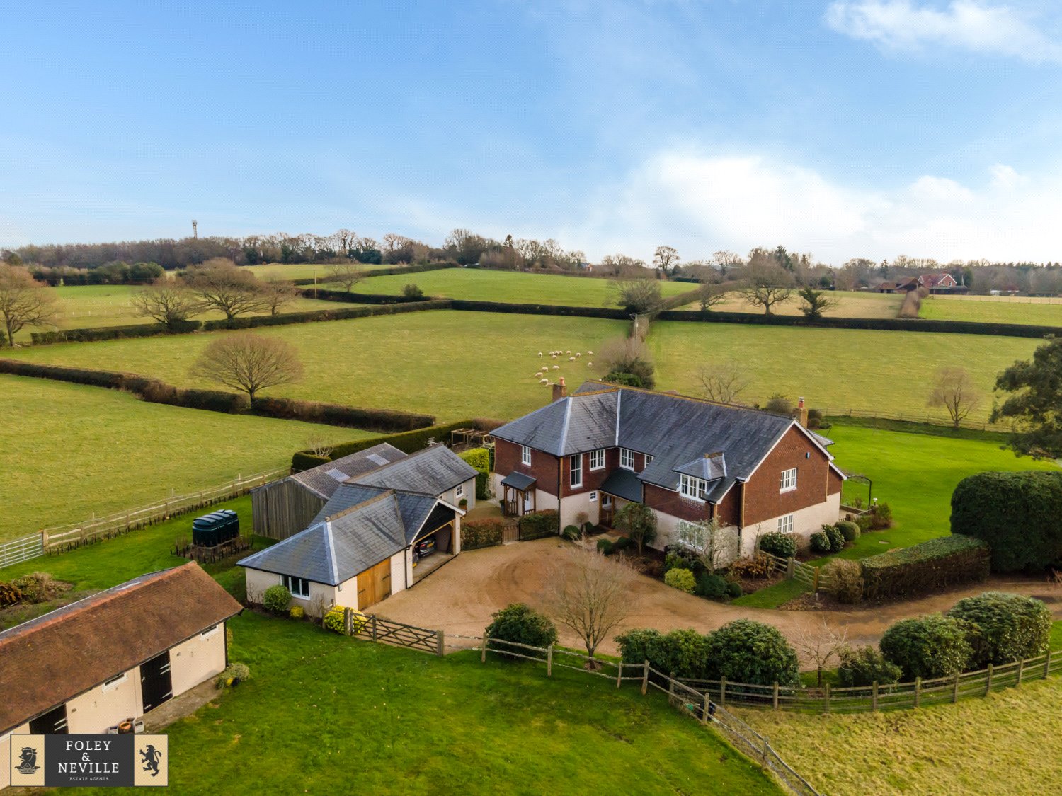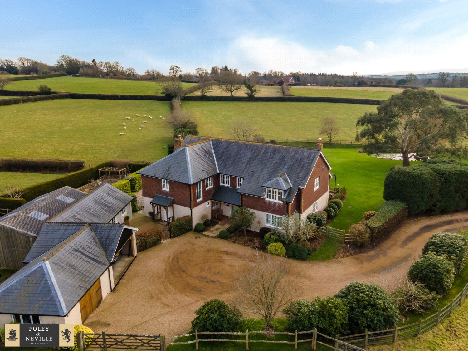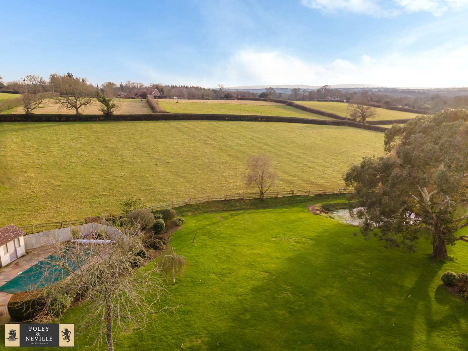 The property is set centrally within its own beautifully maintained landscaped gardens and grounds, including grass paddocks of circa 13 acres, as well as being situated away from any main roads, in addition to also being hidden from site at the end of its own long elegant gated private gravelled lane. This wonderful and substantial family residence also enjoys the most heavenly uninterrupted panoramic rural views all the way to the South Downs.