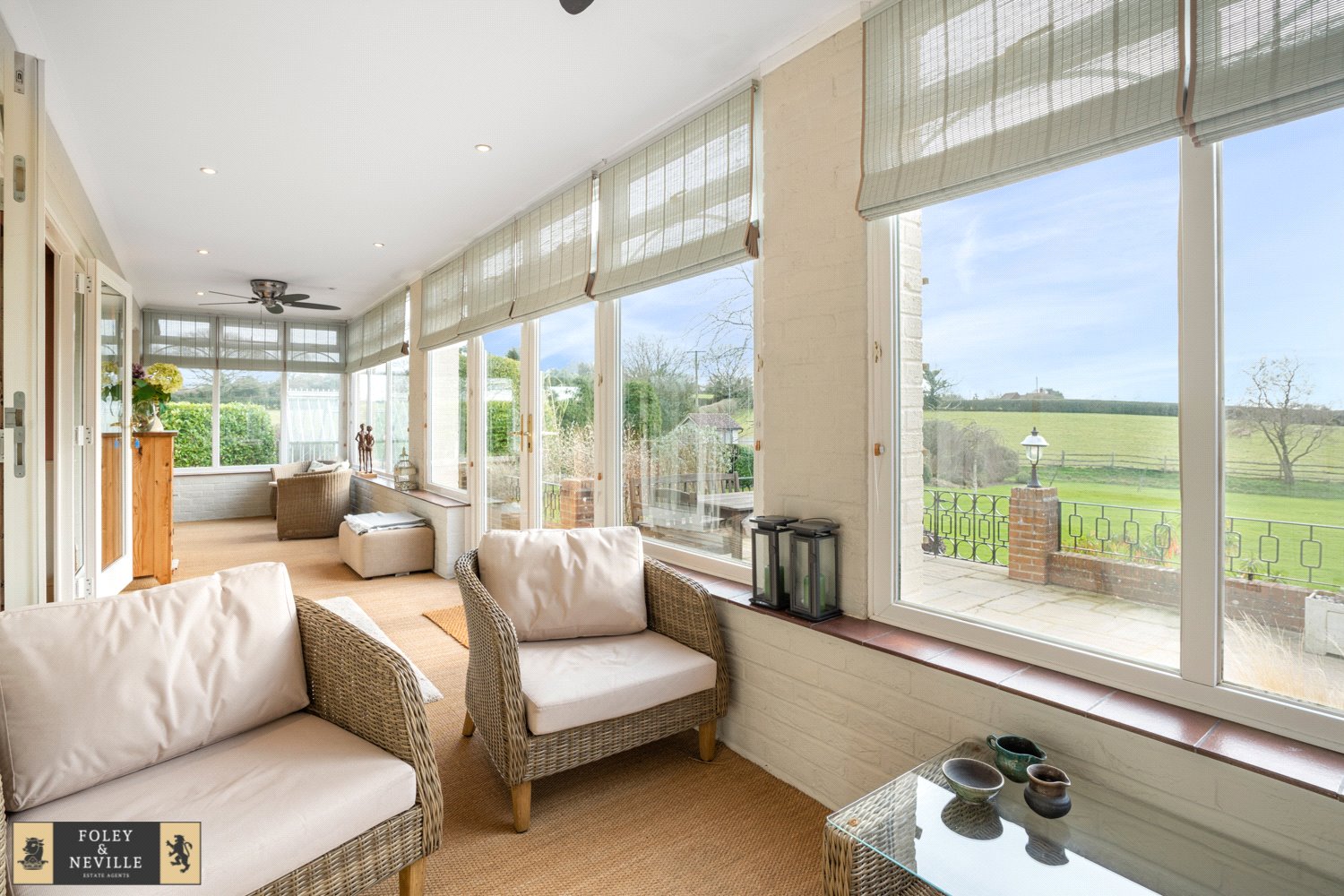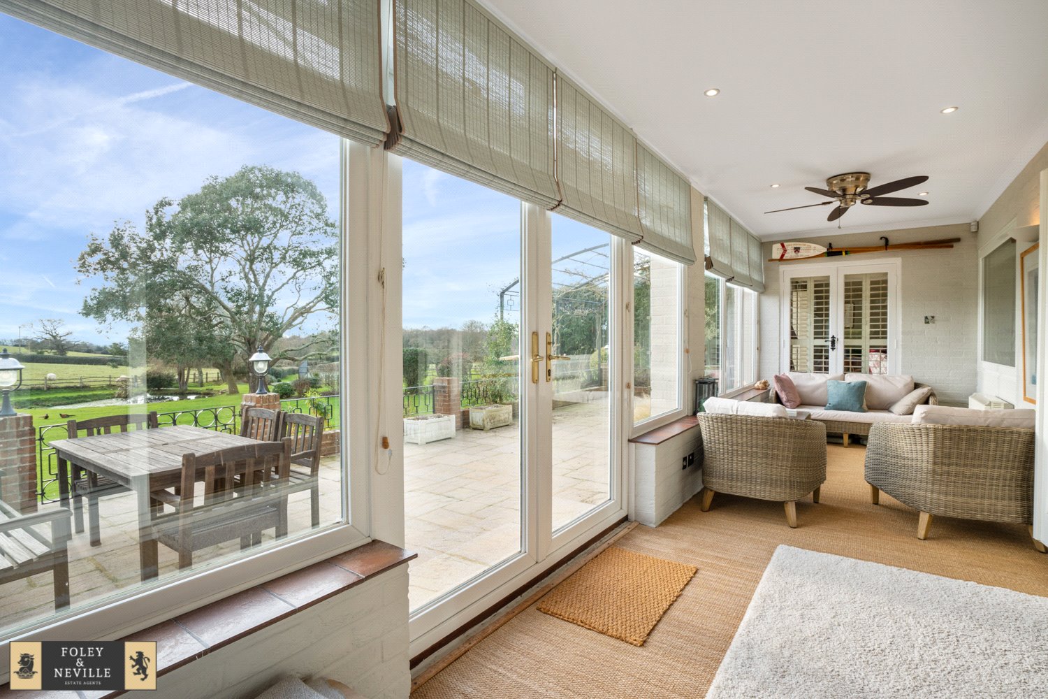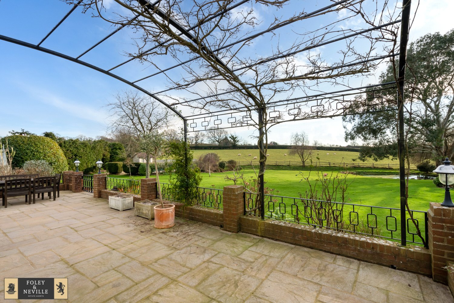 The property is set centrally within its own beautifully maintained landscaped gardens and grounds, including grass paddocks of circa 13 acres, as well as being situated away from any main roads, in addition to also being hidden from site at the end of its own long elegant gated private gravelled lane. This wonderful and substantial family residence also enjoys the most heavenly uninterrupted panoramic rural views all the way to the South Downs.
