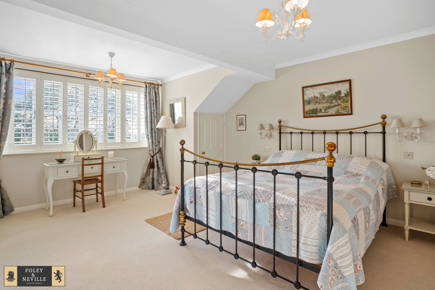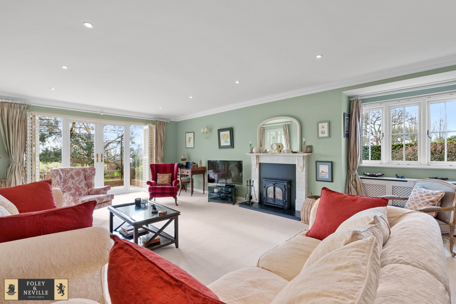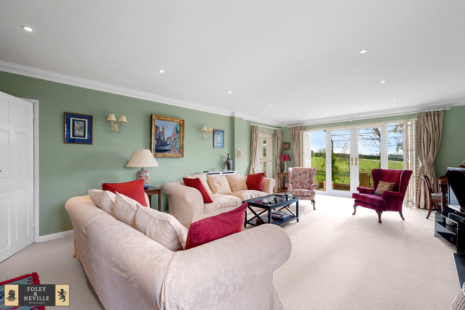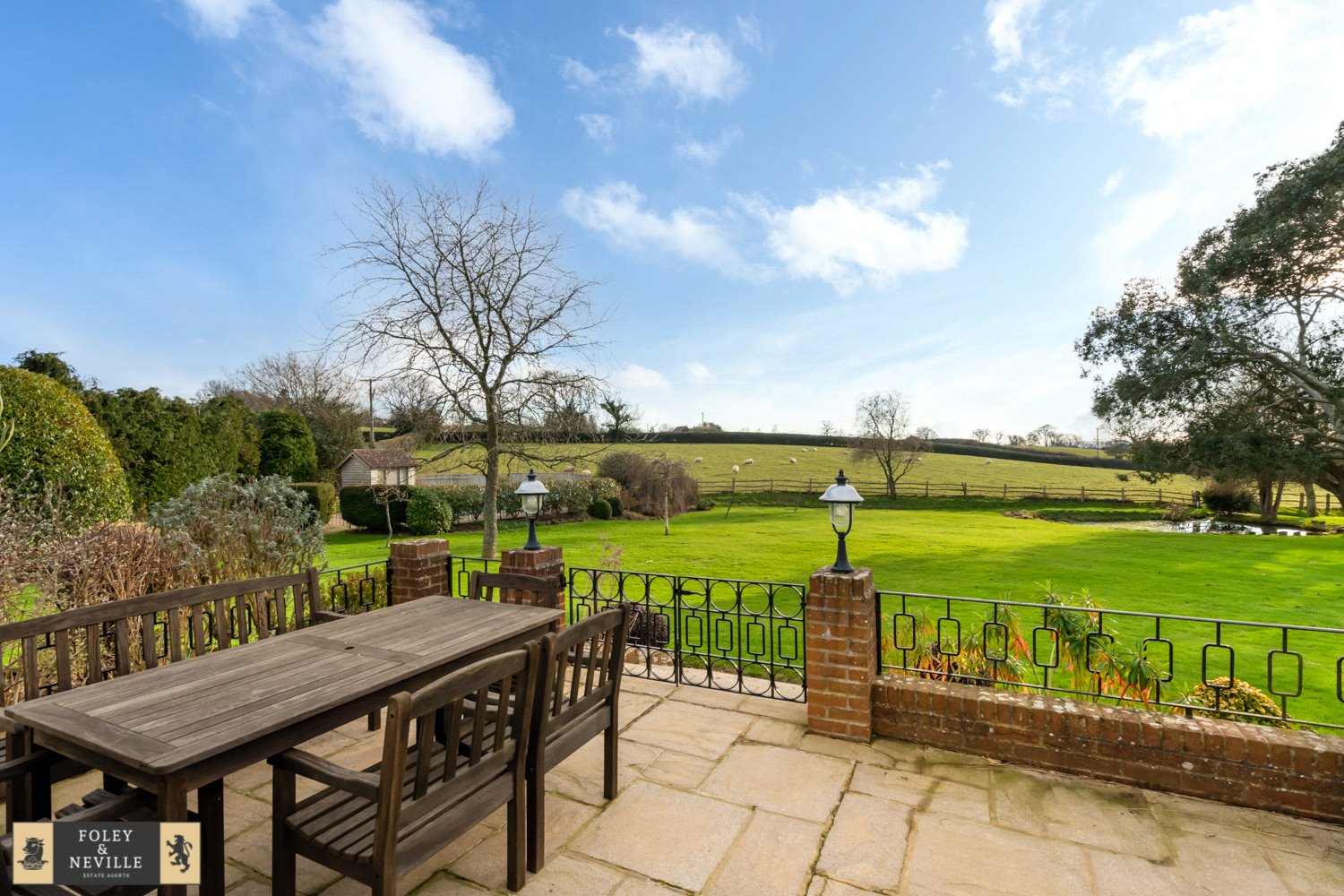 The property is set centrally within its own beautifully maintained landscaped gardens and grounds, including grass paddocks of circa 13 acres, as well as being situated away from any main roads, in addition to also being hidden from site at the end of its own long elegant gated private gravelled lane. This wonderful and substantial family residence also enjoys the most heavenly uninterrupted panoramic rural views all the way to the South Downs.