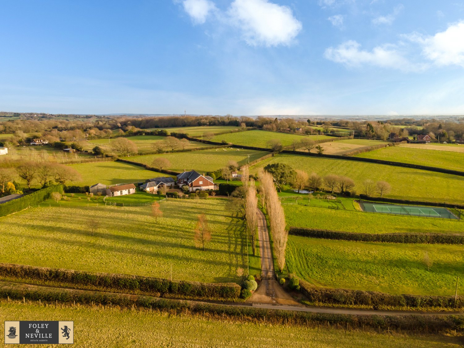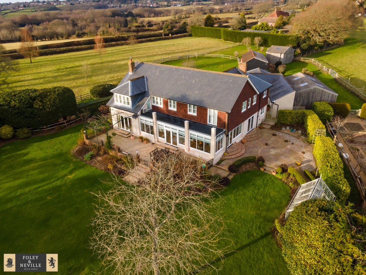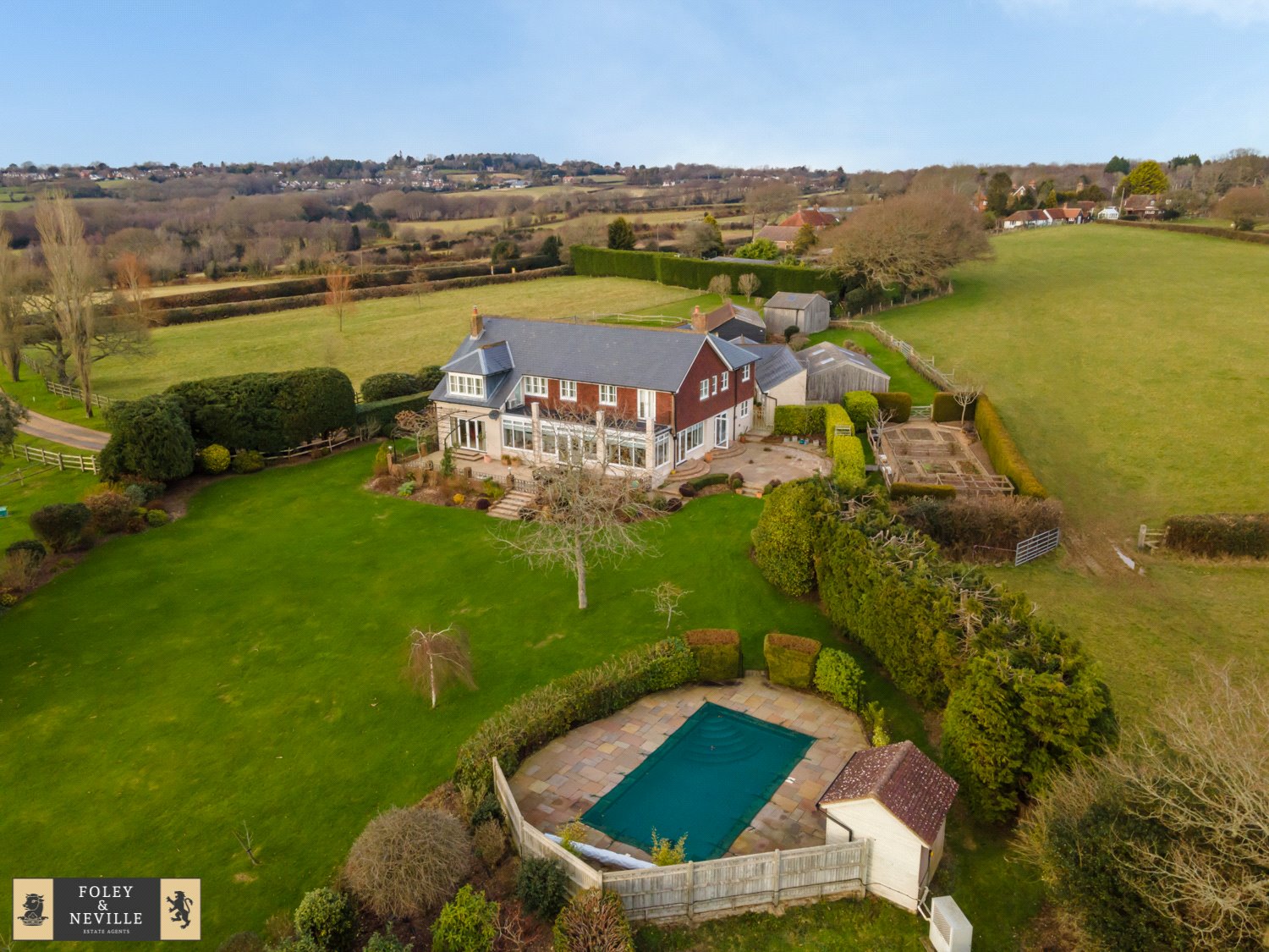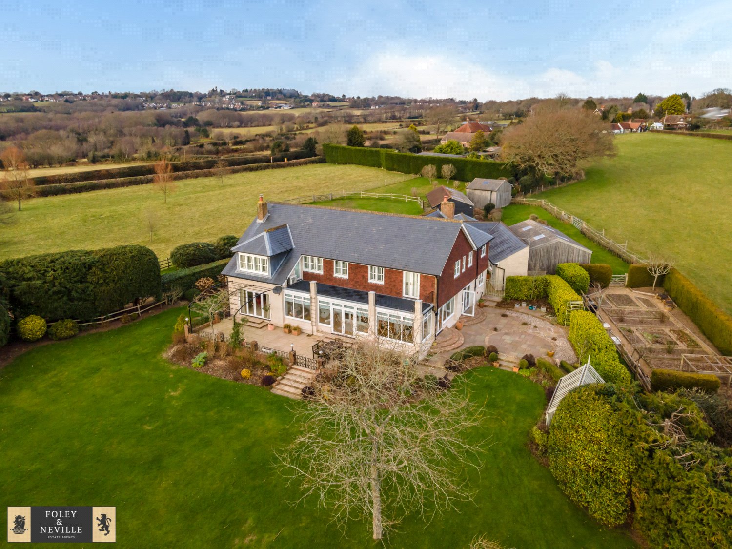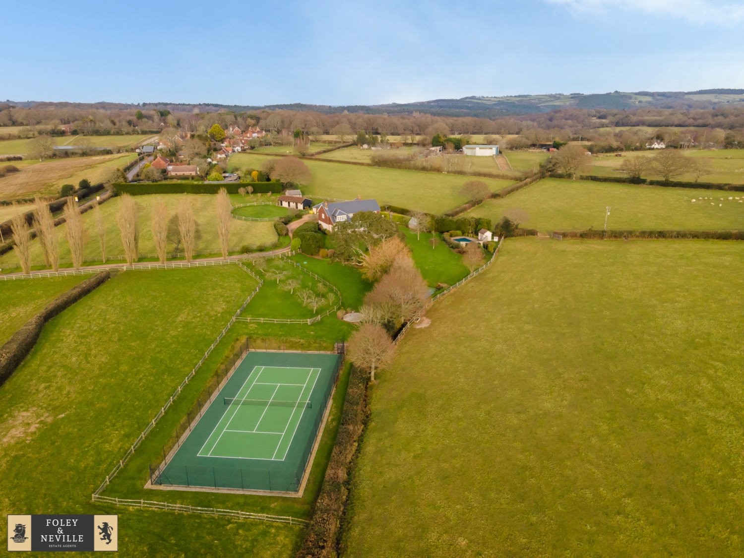 MAIN SPECIFICATIONS: A SUBSTANTIAL DETACHED CHARACTER STYLED 4,200 SQUARE FOOT PLUS MODERN 5 TO 6 BEDROOMED FAMILY RESIDENCE, SET WITHIN CIRCA 13 ACRES (A Further 5 acres adjoining may be available by separate negotiation) OF ITS OWN SECLUDED PRIVATE GARDENS AND GROUNDS, ENJOYING WONDERFUL FAR REACHING UNINTERUPTED RURAL VIEWS TO THE SOUTH DOWNS, INCLUDING A FEATURE SOUTH FACING LARGE BALCONY * FOUR RECEPTION ROOMS * NUMEROUS ENSUITES, WITH POTENTIAL FOR MORE * A STAFF / GRANNY SUITE * A VAST LOFT ROOM, WITH POTENTIAL FOR CONVERSION INTO BESPOKE CINEMA / GAMES ROOM * EXCEPTIONALLY WELL MAINTAINED AND EXTENSIVELY ENHANCED THROUGHOUT, ALSO DESIGNED FOR LOW MAINTENANCE AND ENERGY EFFICENCY * LONG PRIVATE ELECTRIC GATED DRIVEWAY WITH AUTOMATIC NIGHT SENSOR LIGHTING * ALL WEATHER TENNIS COURT * HEATED OUTDOOR SWIMMING POOL * BESPOKE SPIRAL WINE CELLAR * NUMEROUS OUTBUILDINGS, THREE OF WHICH ARE PRESENTLY CONSIDERED SUITABLE FOR CONVERSION TO LUCRATIVE HOLIDAY LETTING UNITS WITH PLANNING ENQUIRIES PRESENTLY BEING SUBMITTED * A FURTHER LARGE BRICK BUILT BUILDING MAY ALSO BE SUITED FOR CONVERSION INTO A DETACHED ANNEX SUBJECT TO PLANNING * AN ADDITIONAL NEW LARGE AGRICULTURAL BUILDING IS ALSO CONSIDERED POSSIBLE TO BE GRANTED PLANNING PERMISSION DUE TO THE ACREAGE THIS COUNTRY HOME POSSESSES UNDER PRE DETERMINATION PLANNING * SUPER FAST FIBRENET BROADBAND CONNECTED *