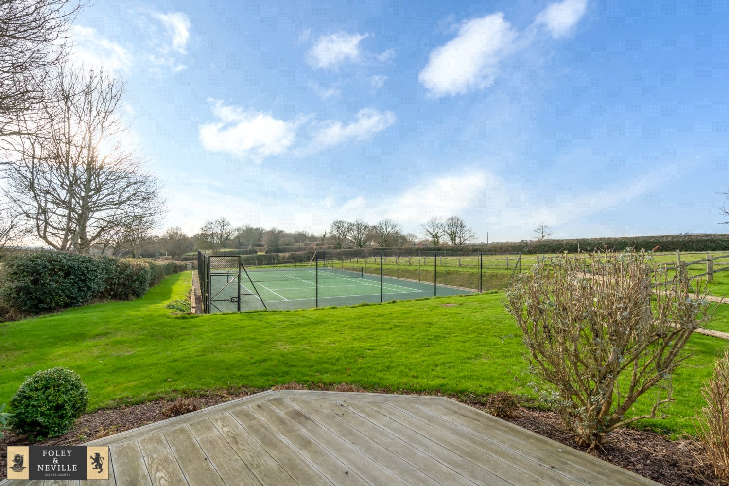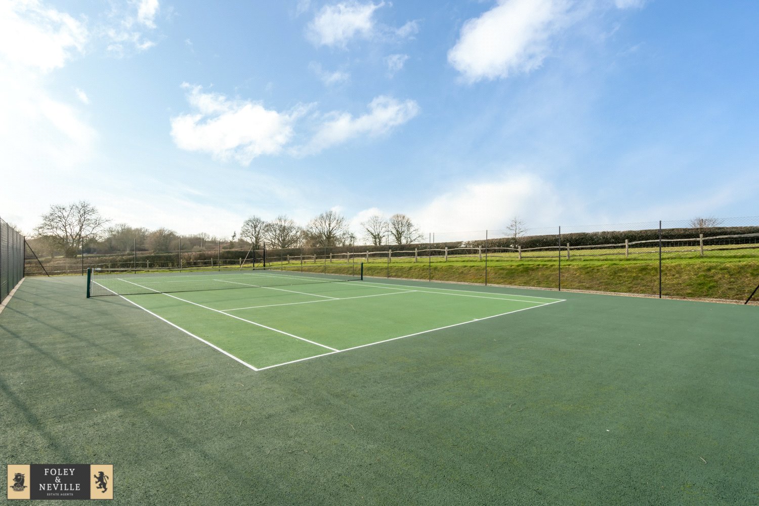 ALL WEATHER TENNIS COURT: Having been recently renovated with high chain link surround fencing and the benefit of a viewing terrace nearby with electrics. This viewing base was also designed for a summer house to be positioned in situ at a later date if desired.