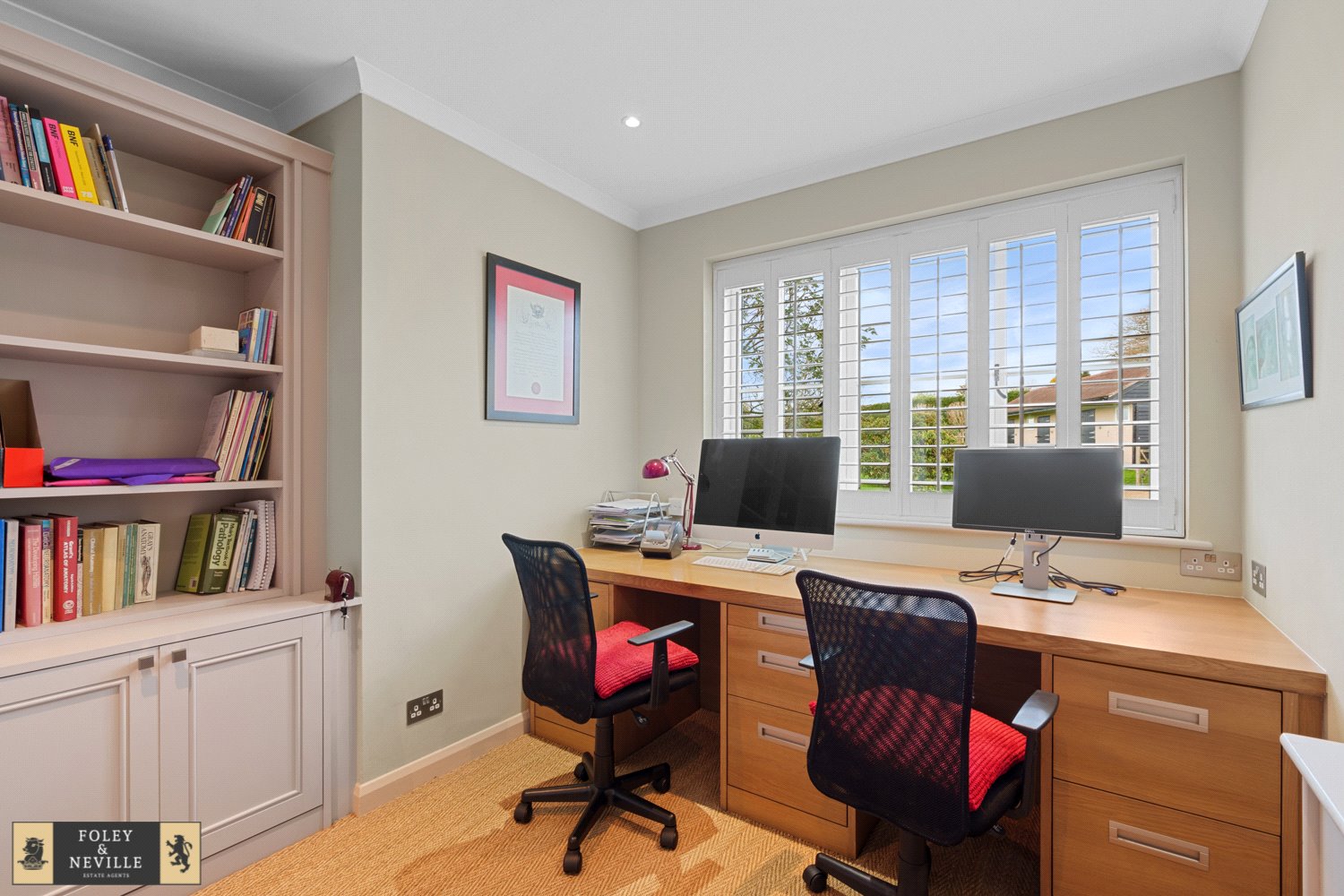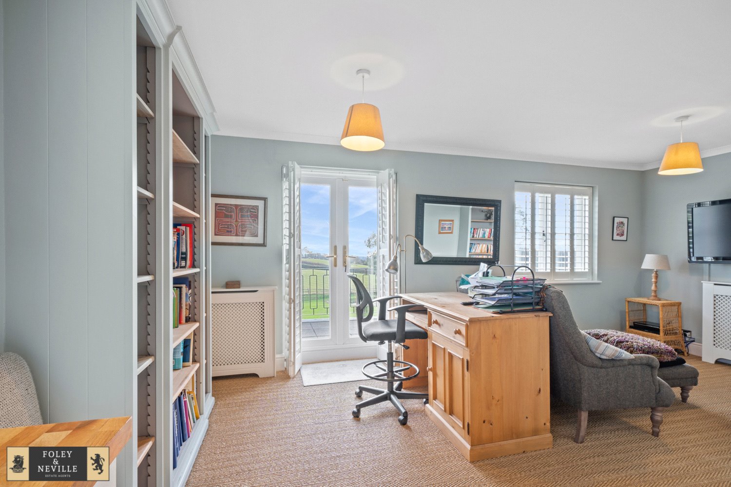DOWNSTAIRS STUDY: With the benefit of fibre to the door fast broadband, fitted bespoke desk and work area, additional cupboards, radiator, double glazed windows with aspect to front.
