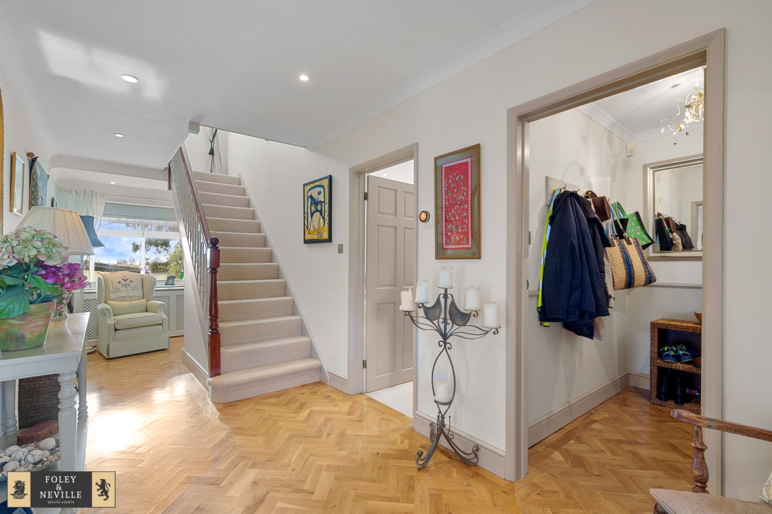 INNER LOBBY: With the continuation of the wonderful oak parquet flooring, coat storage area, dado rails, coved ceiling, wall mounted entry phone system and door leading to the main downstairs cloakroom.