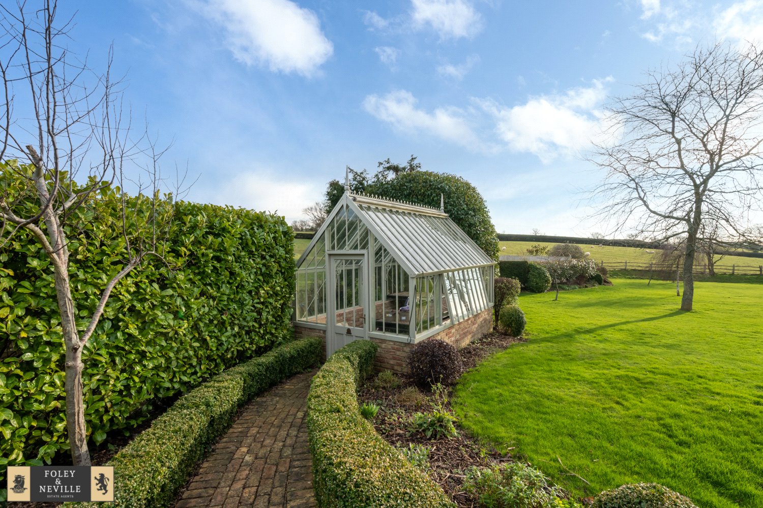 Positioned to the south easterly side of the property beyond one of the paved terraces is a bespoke and immaculately maintained Alitex greenhouse and further to the side encompassed by mature hedging is a well tended vegetable and specimen rose garden.
