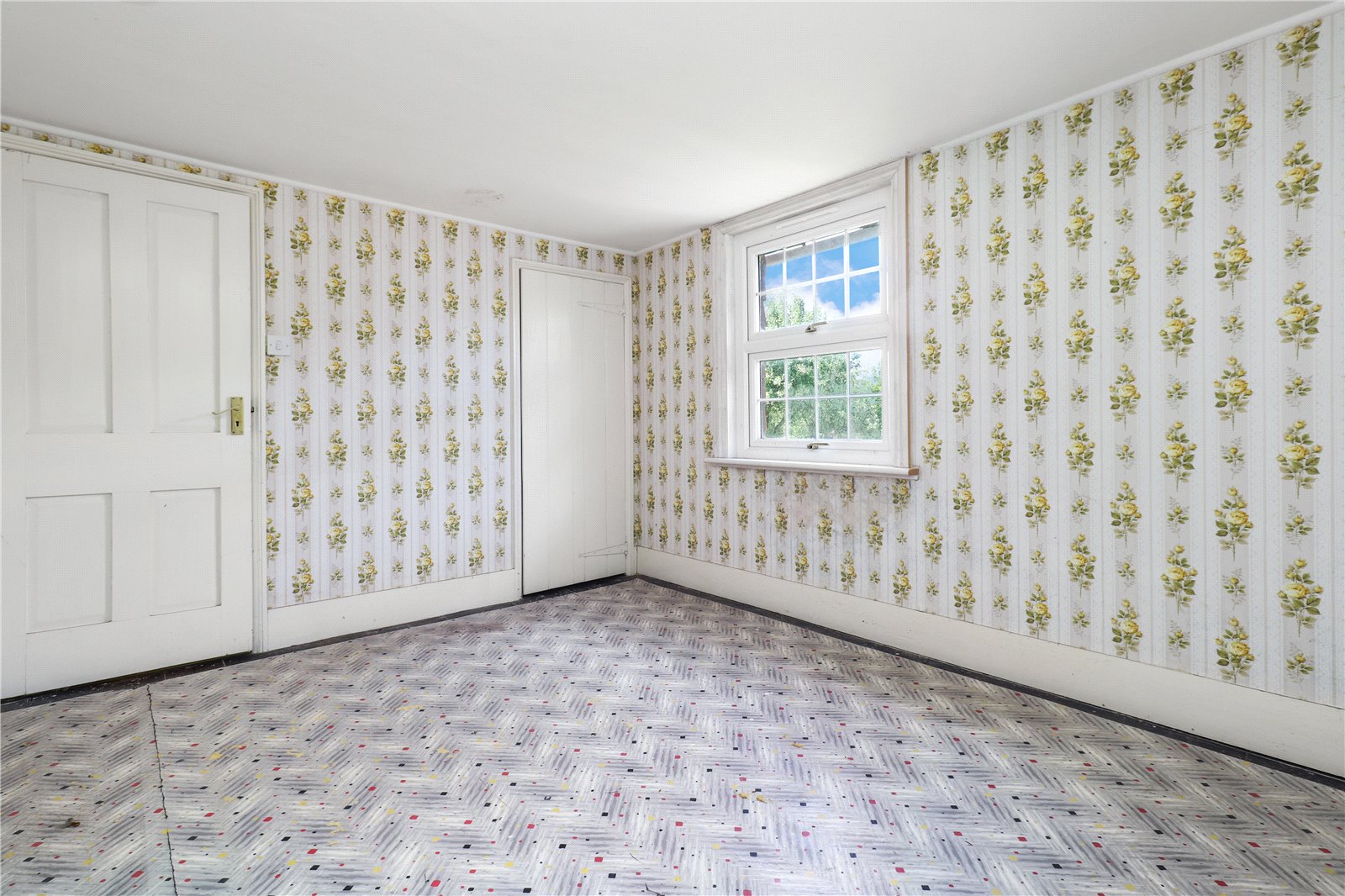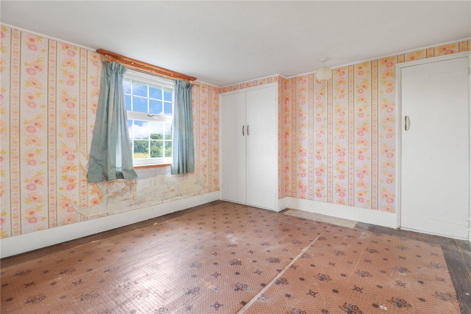 BEDROOM THREE: A double sized room with fitted wardrobe cupboard and double-glazed window with aspect over the front garden and views beyond of the countryside.