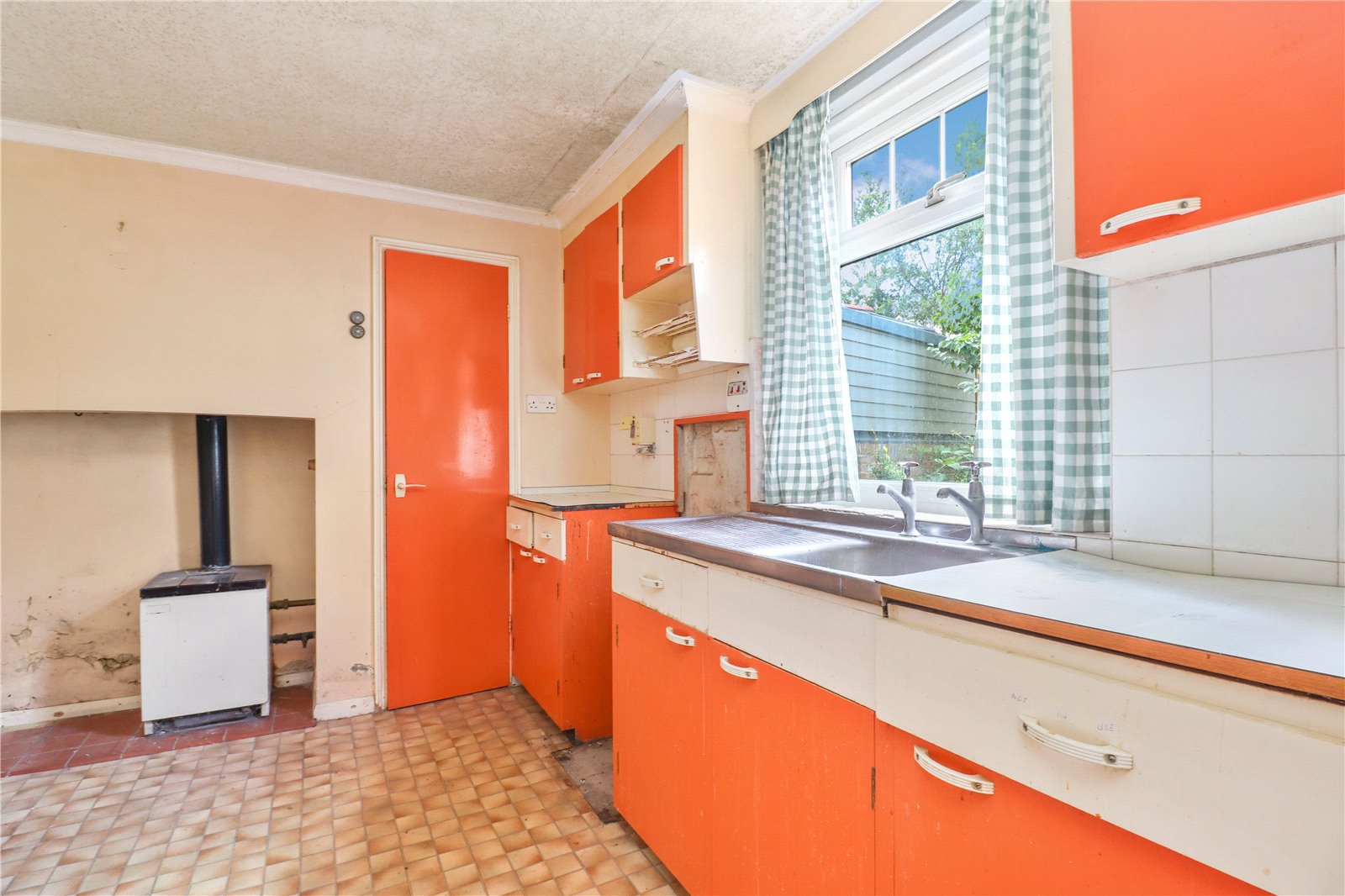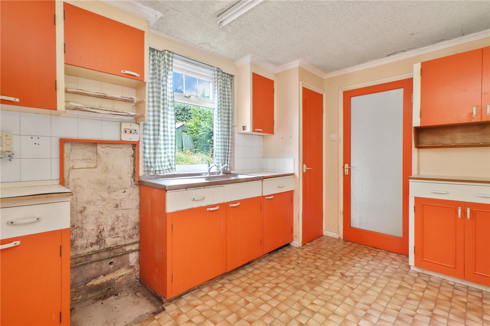 KITCHEN: With range of cupboard and base units and work tops over, stainless steel sink unit with mixer, tiled surrounds, double glazed window with aspect over the rear garden.