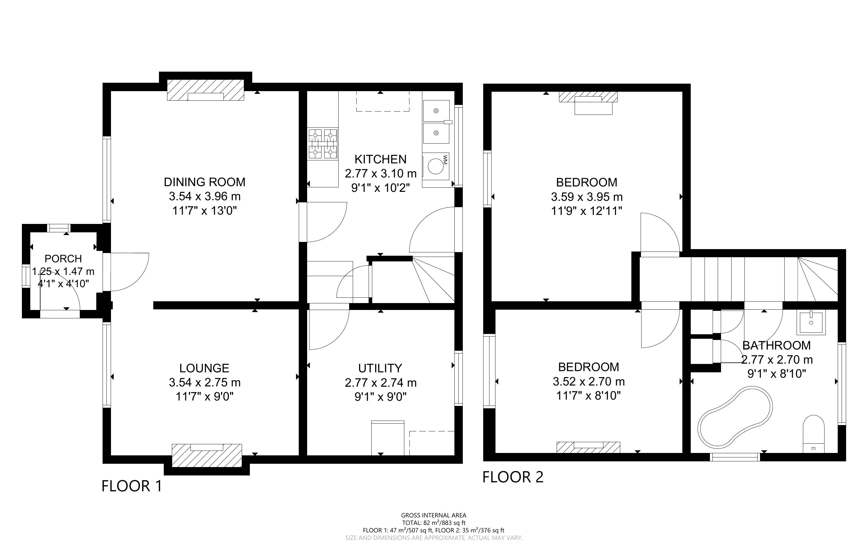 FIRST FLOOR LANDING: With eves storage cupboards just before and leading off the staircase, doors leading off to bedroom one and bedroom two.