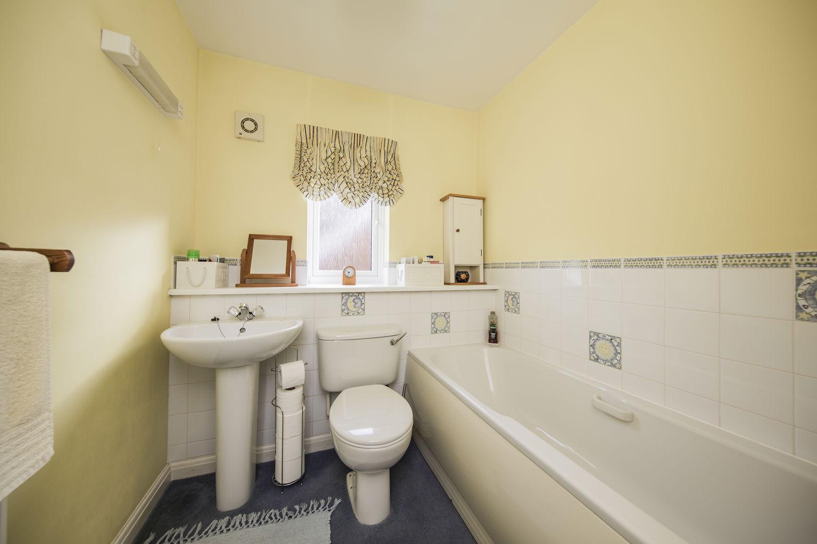 FAMILY BATHROOM: Double glazed window. White suite comprising panel enclosed bath with mixer taps and shower attachment. WC. Pedestal wash basin. Part tiled walls. Extractor fan. Radiator.