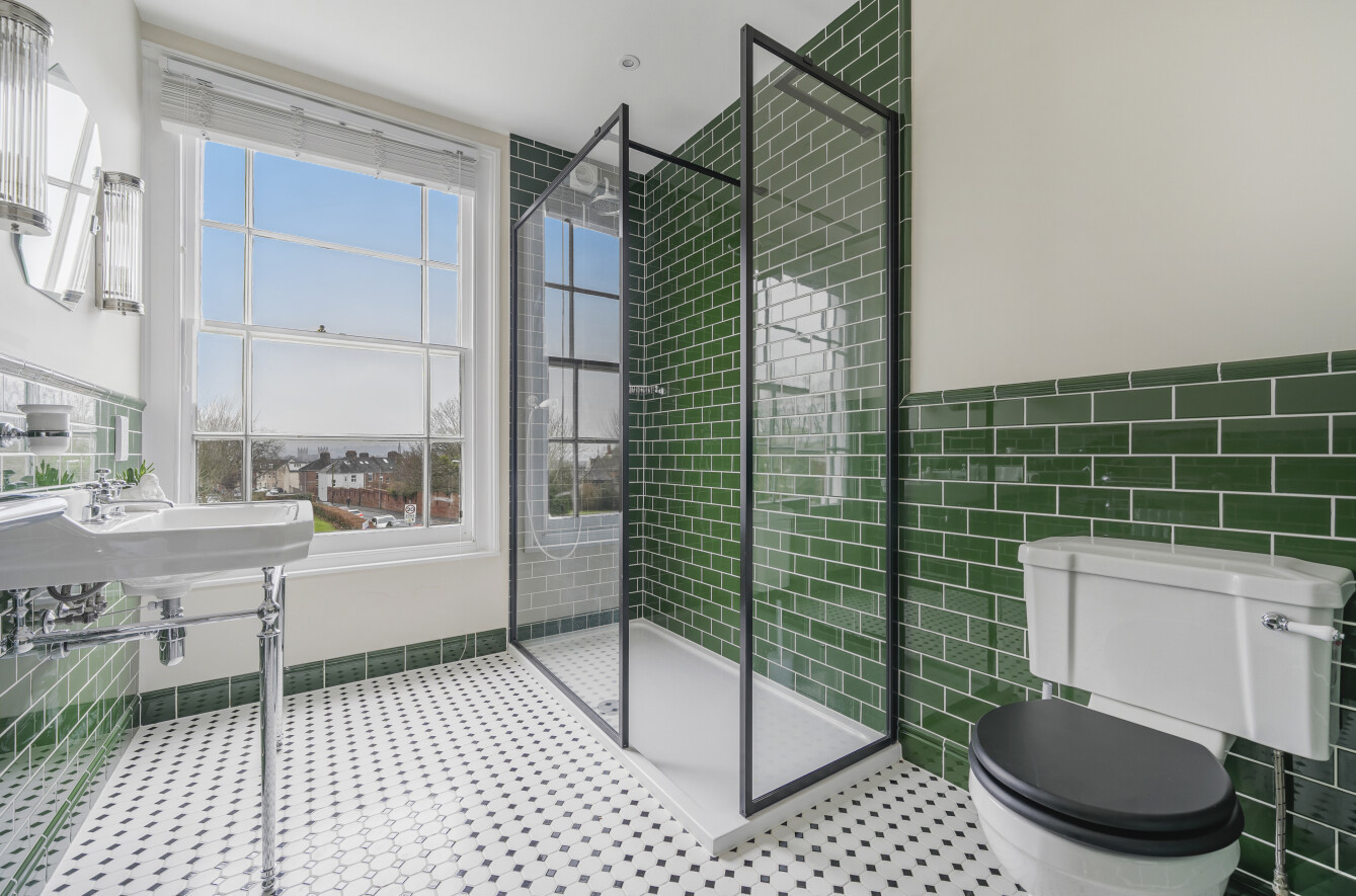 The first floor has a stylish, recently remodelled shower room, comprising a large wash hand basin and electric shaver point, low level WC and a double size walk-in shower enclosure with mains shower unit and glazed screens. Contemporary heated towel rail/radiator and the room is finished with beautiful part tiled walls and tiled Flooring. Views towards the city centre, cathedral and hills beyond.