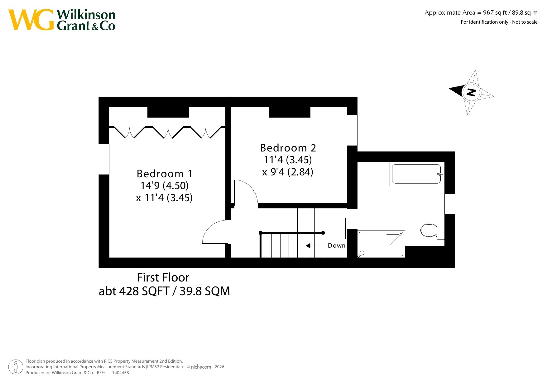 The first-floor landing provides access to spacious loft storage and leads to two well-proportioned double bedrooms. The principal bedroom benefits from a comprehensive range of fitted storage and a front aspect, while the second bedroom enjoys views over the rear.