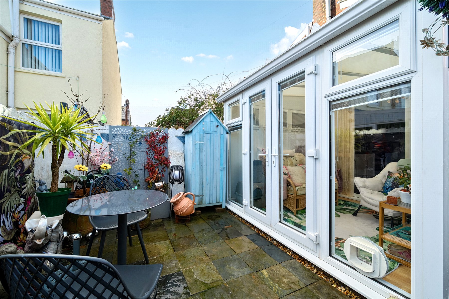 To the front of the property is a charming walled garden with raised flower and shrub beds, slate-chipped areas and a pathway leading to the front door, complete with outside lighting. The enclosed rear courtyard is paved and features a pizza oven and storage shed, creating an excellent space for outdoor dining and relaxation. On-street parking is available via residents permits.