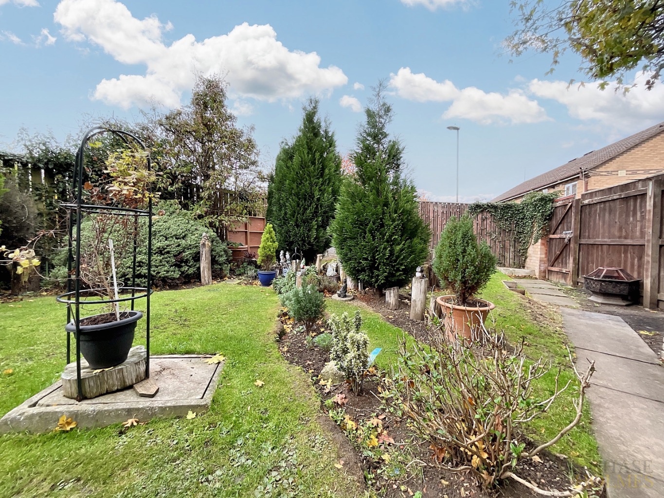 Outside, a private garden provides a peaceful retreat for outdoor dining or play, while the driveway offers convenient off-street parking.
