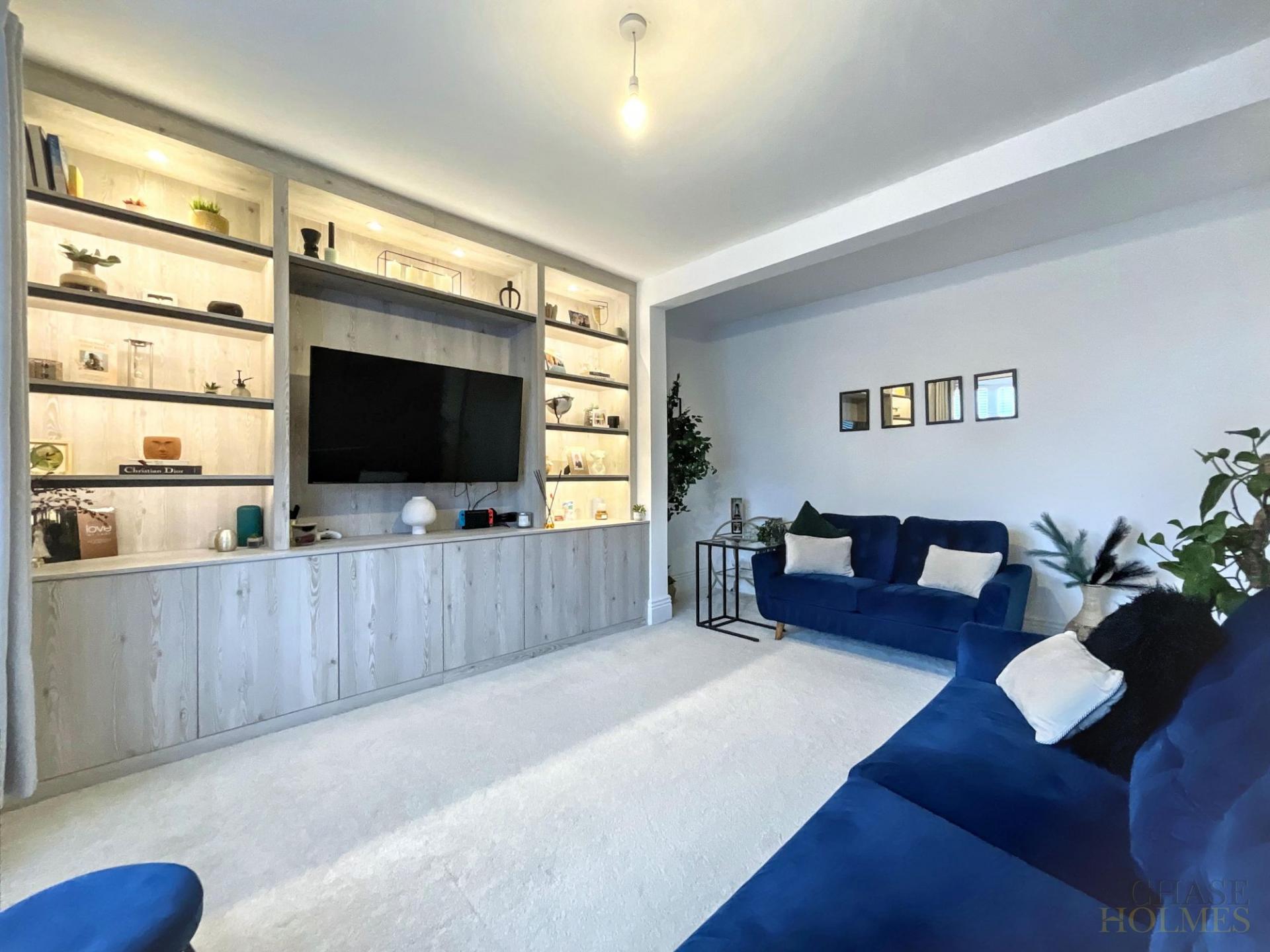 Upon entering the property, you are greeted by a welcoming hallway that leads to a generously sized open plan kitchen and dining area, perfect for both relaxed family meals and entertaining guests. The contemporary kitchen features a stylish island, integrated appliances, and ample storage, while French doors provide seamless access to the conservatory, flooding the space with natural light and creating a wonderful environment for year-round enjoyment. The spacious lounge provides a comfortable retreat for relaxation, complemented by tasteful décor and high-quality finishes throughout.