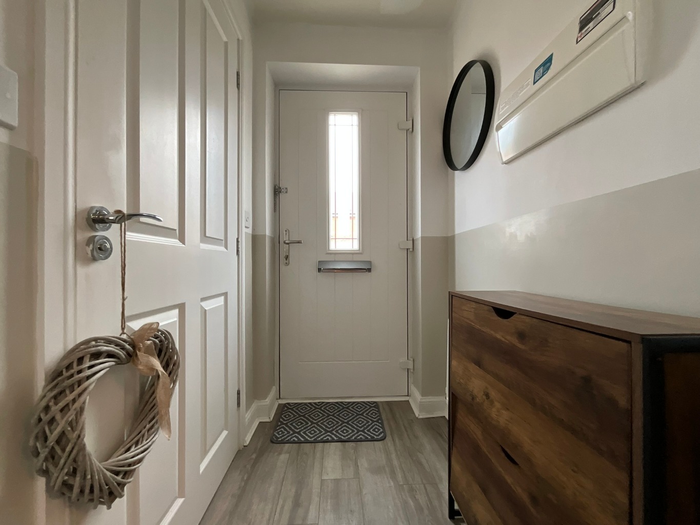 EntranceFeatures: Via composite door, radiator, laminate wood flooring.