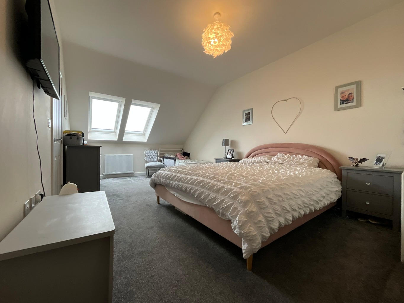 Bedroom One (8.21 x 3.44)Features: radiator, fitted wardrobes, velux window x 2.