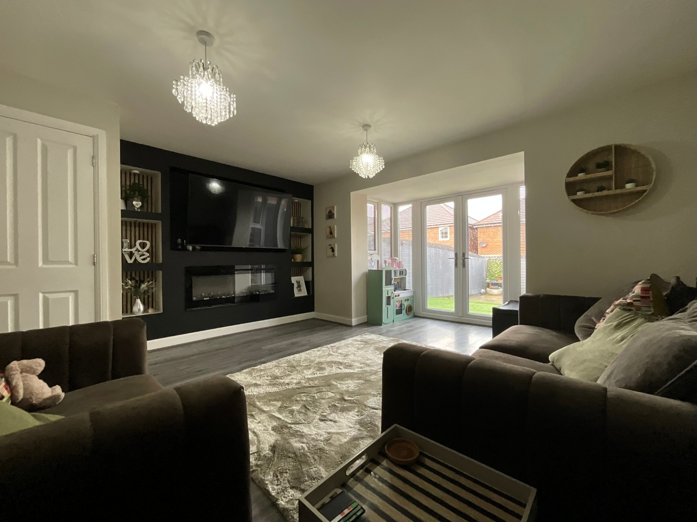 Lounge (4.57 x 3.89)Features: radiator, feature fireplace, UPVC French doors to rear, media wall, storage cupboard.