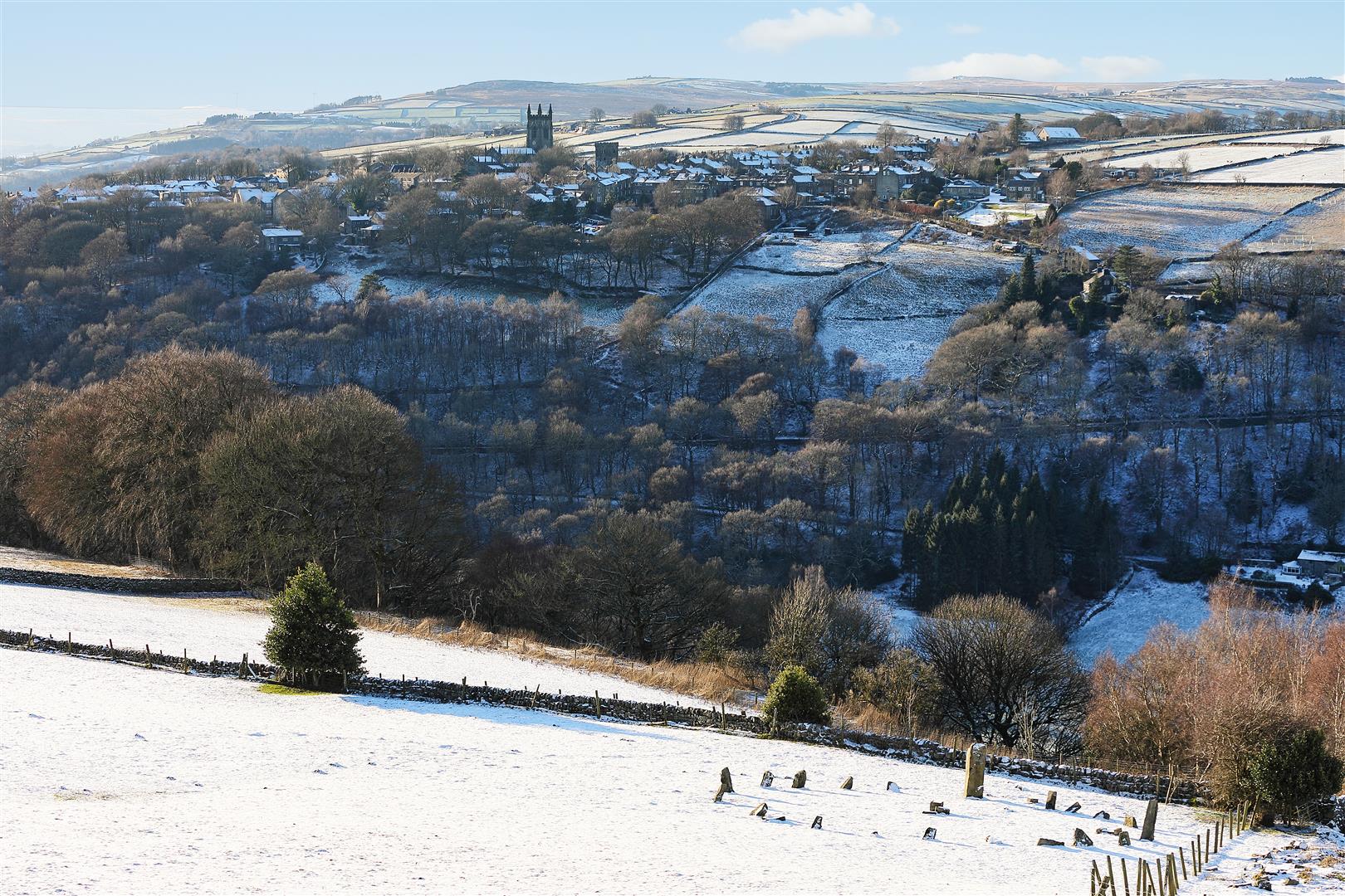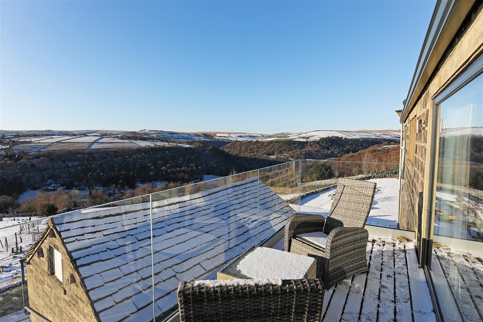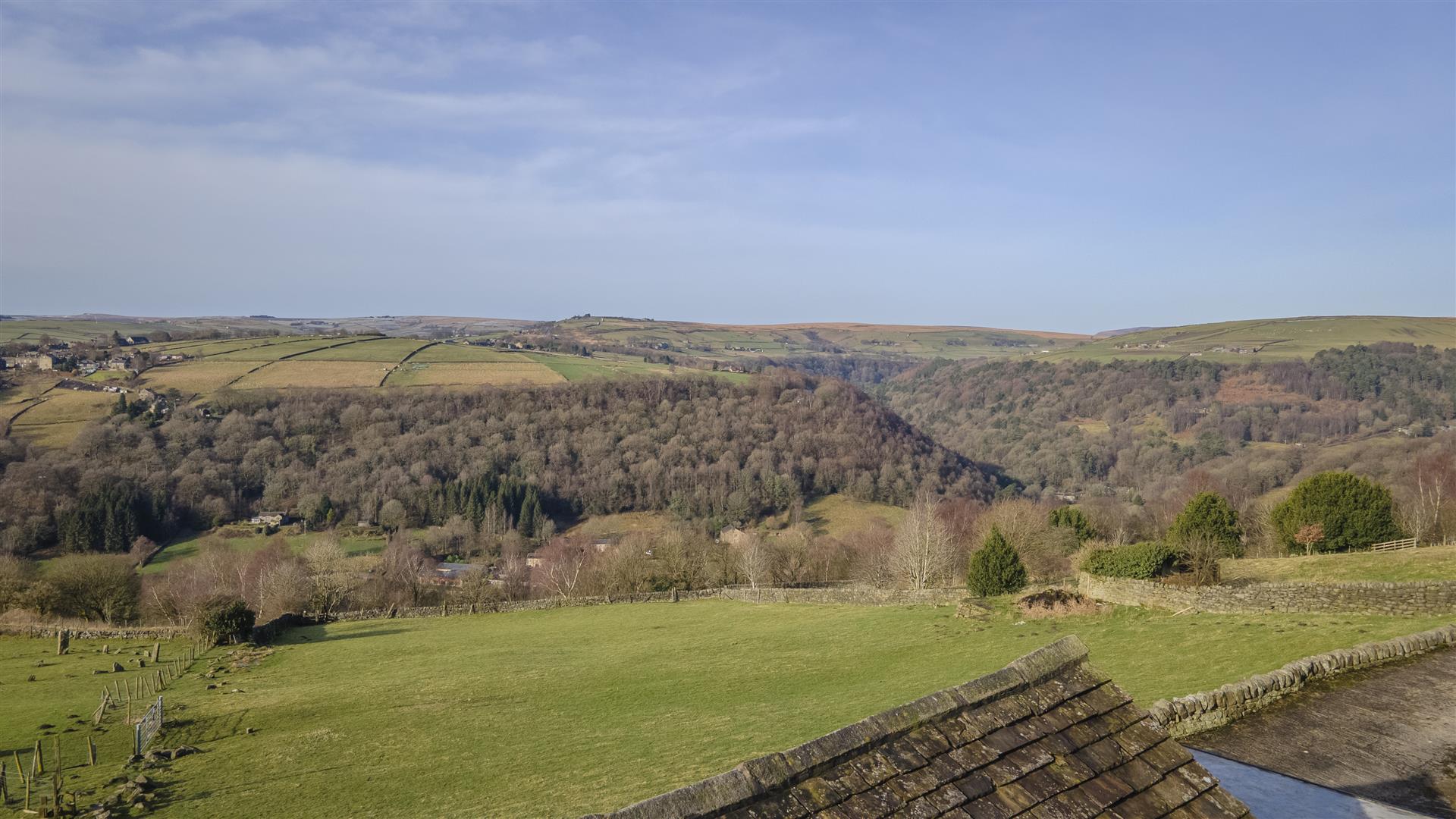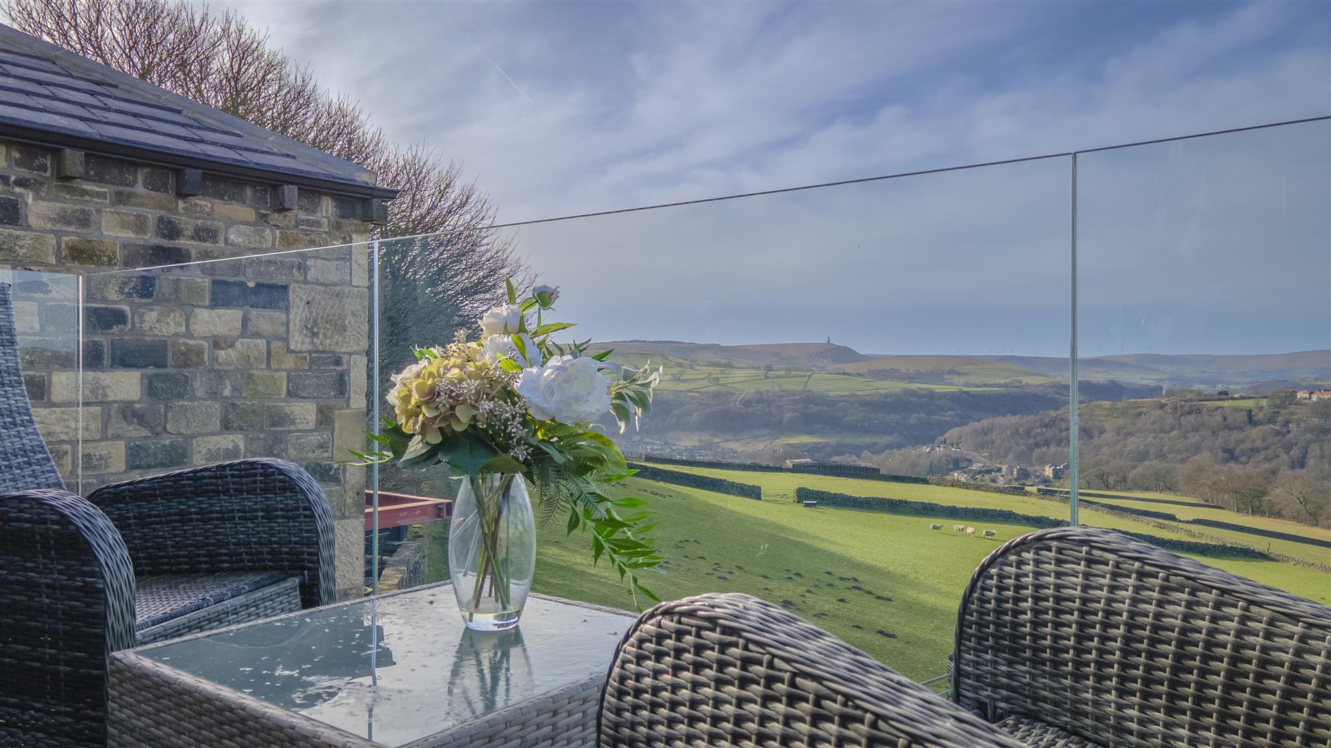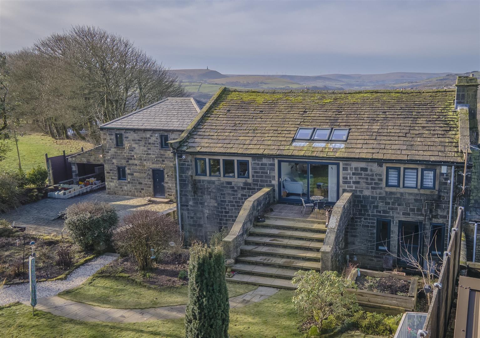 - Panoramic countryside views towards Stoodley Pike and surrounding moorland