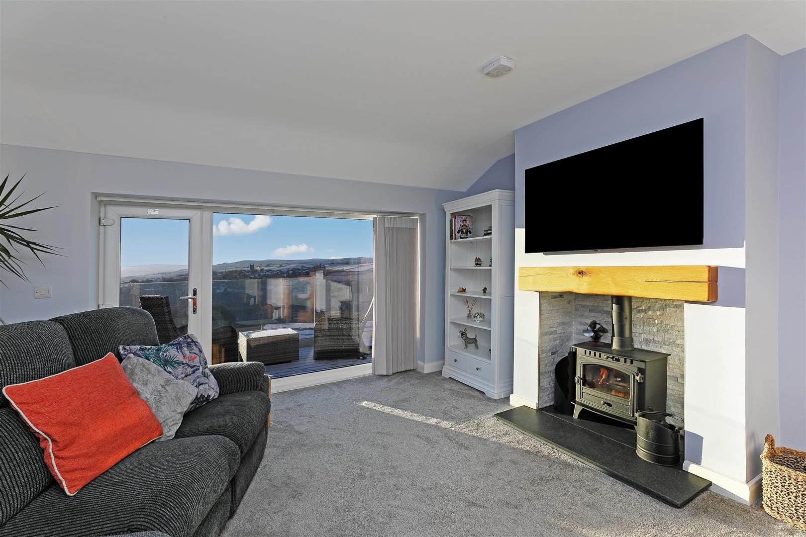 - Seamless indoor-outdoor living via sliding doors to the decked terrace