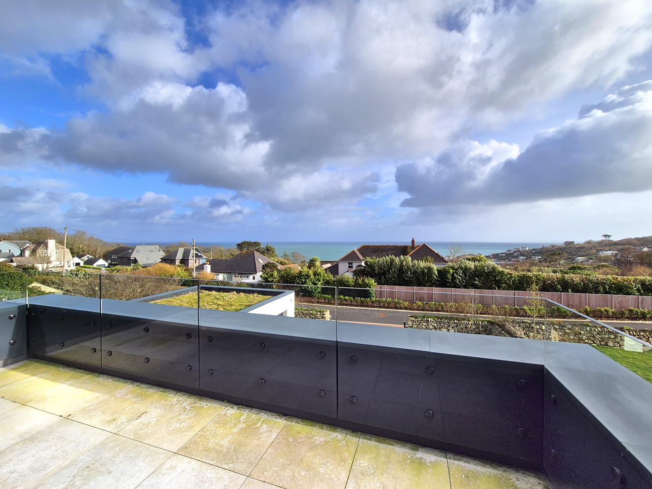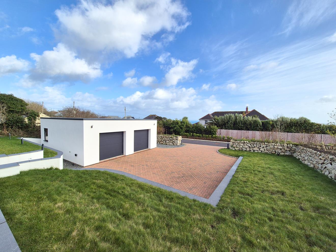Externally, the property enjoys a generous rear garden, predominately laid to lawn, whilst to the front of the property there is an elevated patio area, which allows one to take full advantage of the views over the village and out to the sea. The property further benefits from a large parking area which leads to a double garage. Access from the first floor are two balconies, one of which enjoys an outlook over the village and out to sea.