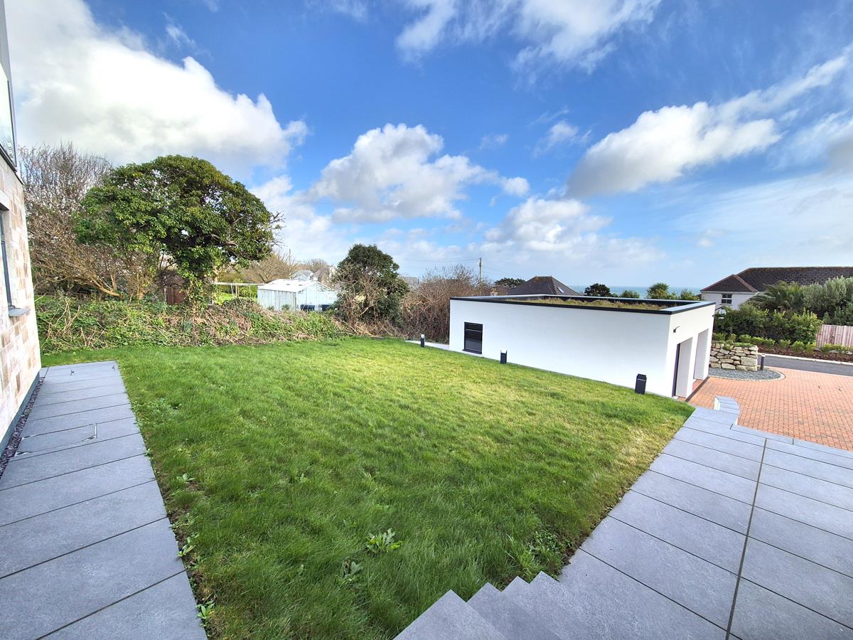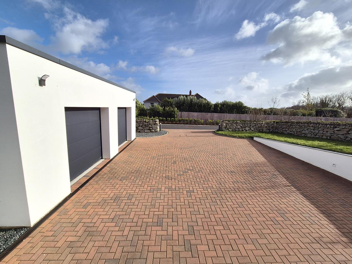 Outside - The outside space is a real feature of the residence with a large parking area to the front which leads to a double garage. To the front of the property there is an elevated patio area, which enjoys views over the village and out to sea. To the rear of the property is a very good size garden, which is mainly laid to lawn.