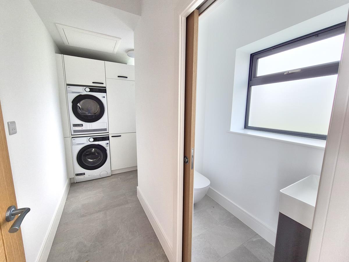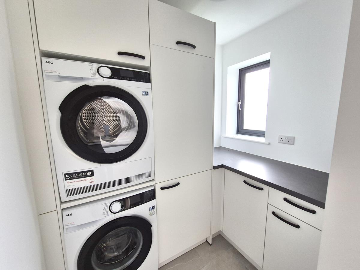 Utility Room - 3.05m x 1.98m (narrowing to 0.99m) (10' x 6'6" (na - Having a tiled floor and worktop surface with cupboards and drawer under, further cupboards, washing machine and tumble drier. There is an obscured window to the rear and a sliding door to