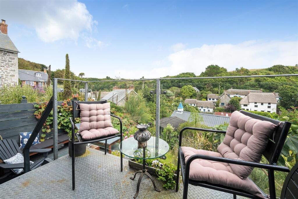 Outside - The gently tiered garden offers a charming cottage feel, with mature plants and winding paths leading from a sun deck boasting stunning sea views. Perfect for relaxing or entertaining, this outdoor space is full of character and designed to make the most of its coastal setting.