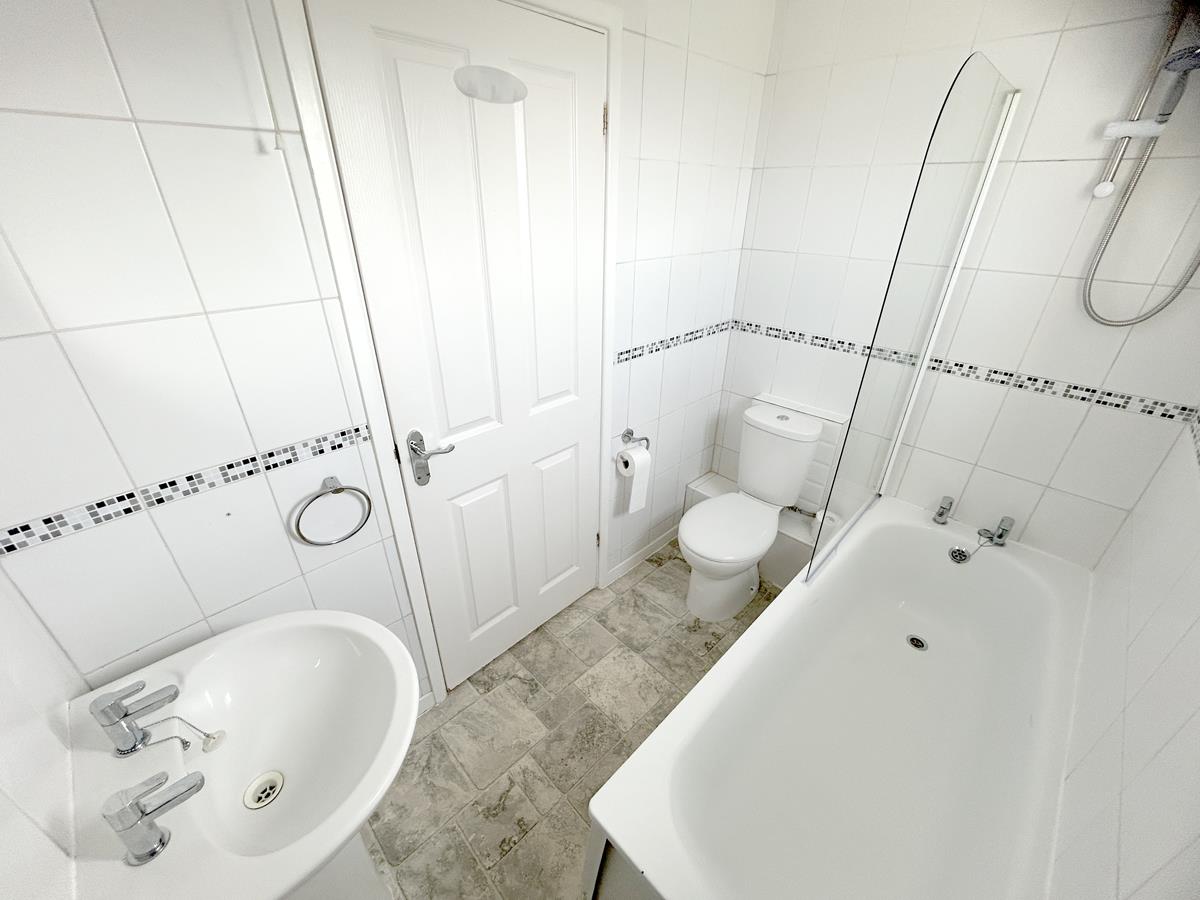 Bathroom - With a white fitted suite comprising a low-level w.c, a pedestal wash hand basin and a panelled bath with shower screen and Triton electric shower over. There is tiling to the walls, linoleum flooring and an obscure glazed window to the side aspect.