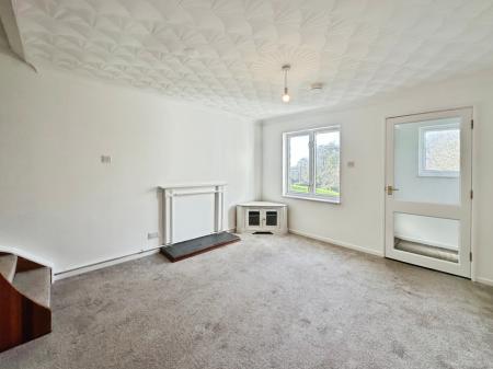 The ground floor comprises a bright and spacious living room with plenty of space for both relaxation and dining, approached through a practical porch entrance. To the rear is a well-laid-out kitchen that enjoys views of the surrounding landscape, with stairs rising from the living area to the first floor.