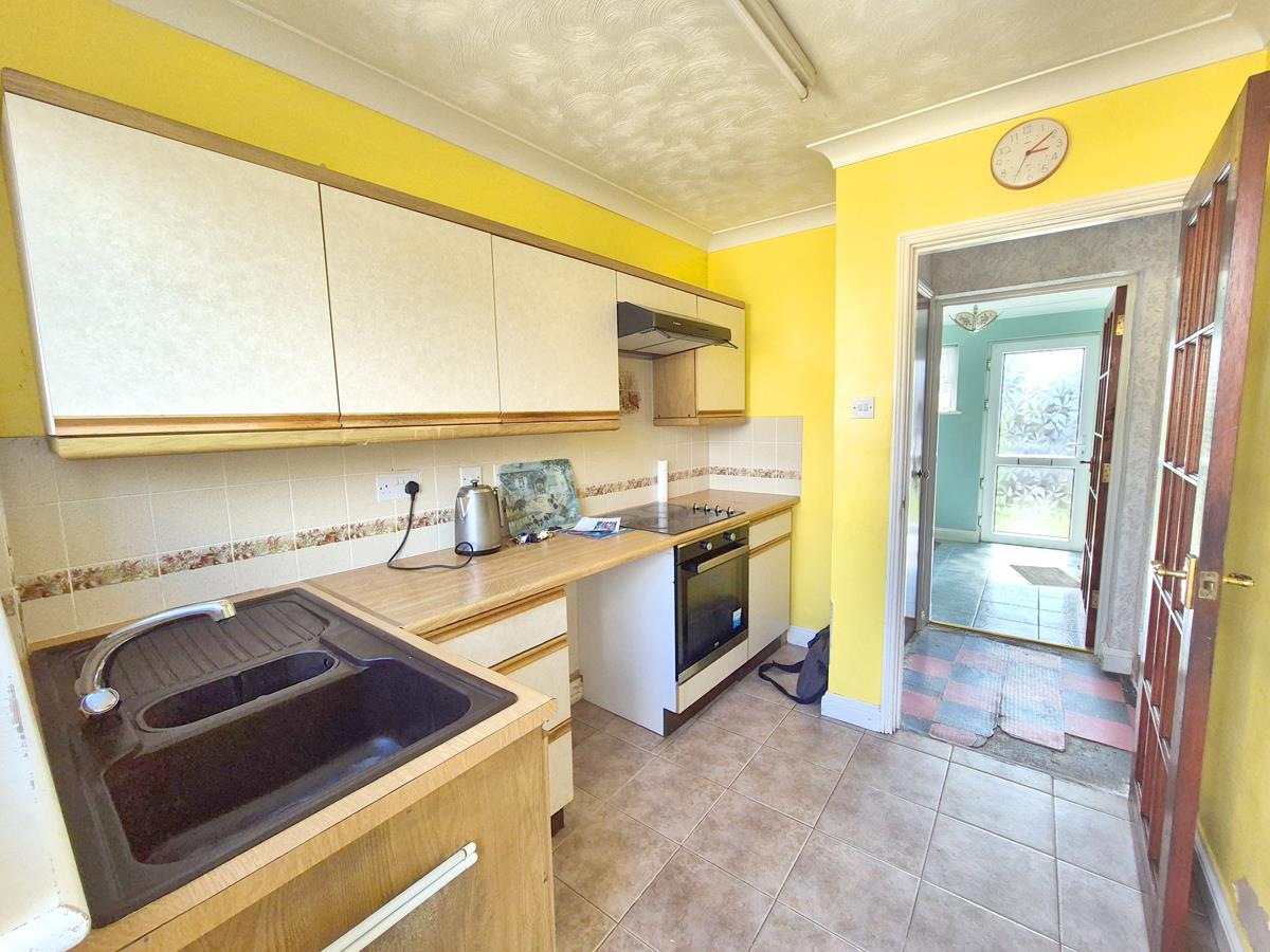 Kitchen - 2.90m narrowing to 2.29m x 2.13m (9'6" narrowing - Working top surfaces incorporating a one and a half bowl sink unit with drainer and mixer tap over, built-in oven with hob and hood over. The room has partially tiled walls, tiled floor and space for a washing machine. With door to the rear.